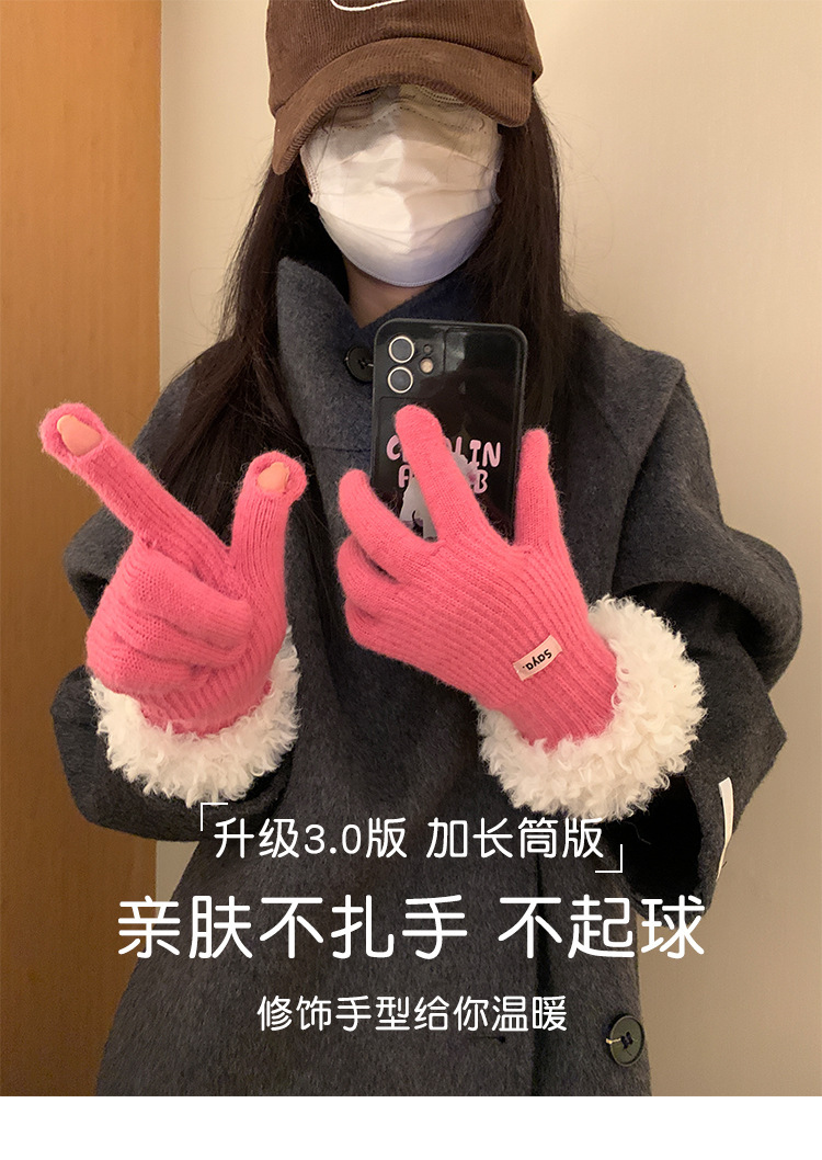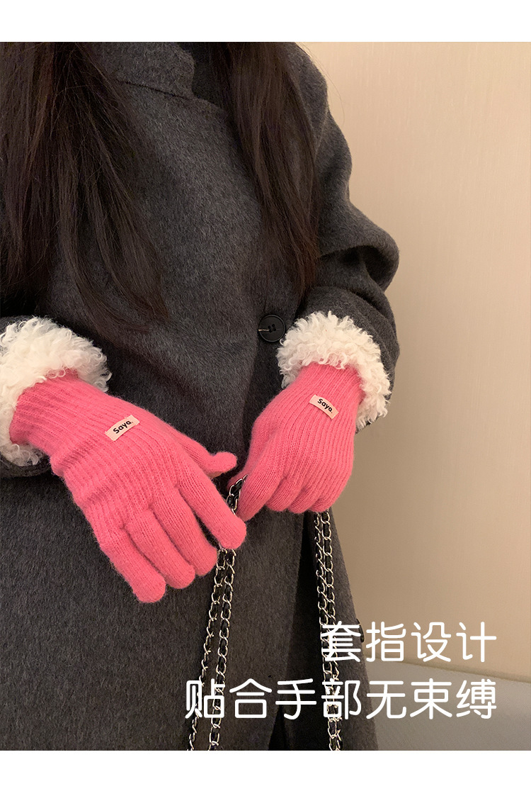 봉제 가장자리 장갑 여성의 겨울 2024 새로운 한국 스타일 니트 따뜻한 사이클링 5 손가락 분리 터치 스크린 방풍 감기스토어 가기