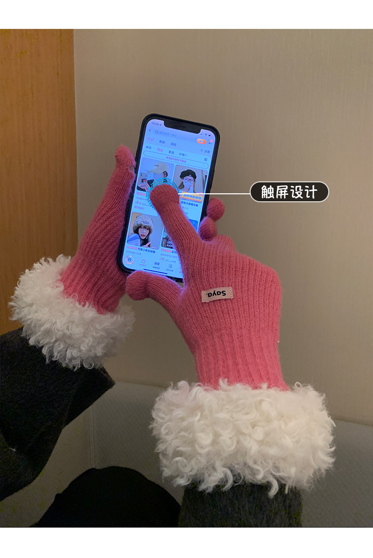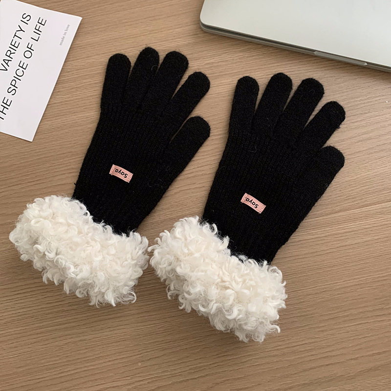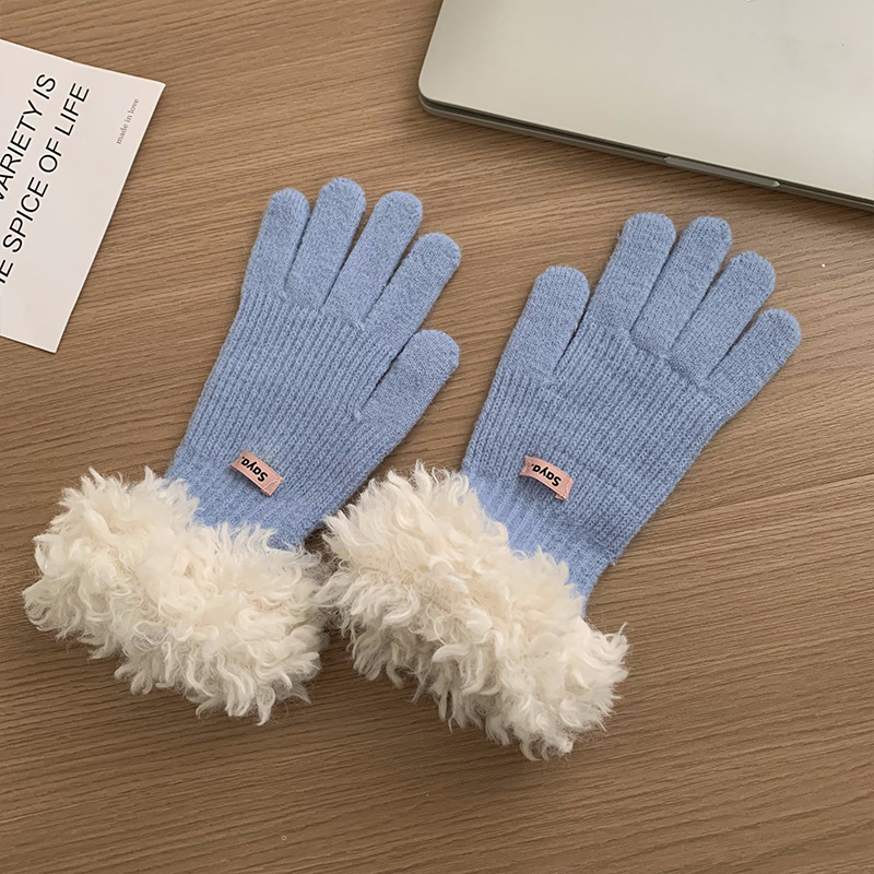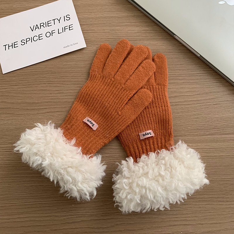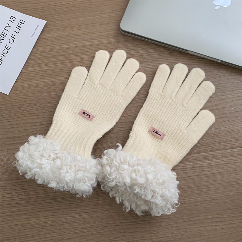 봉제 가장자리 장갑 여성의 겨울 2024 새로운 한국 스타일 니트 따뜻한 사이클링 5 손가락 분리 터치 스크린 방풍 감기