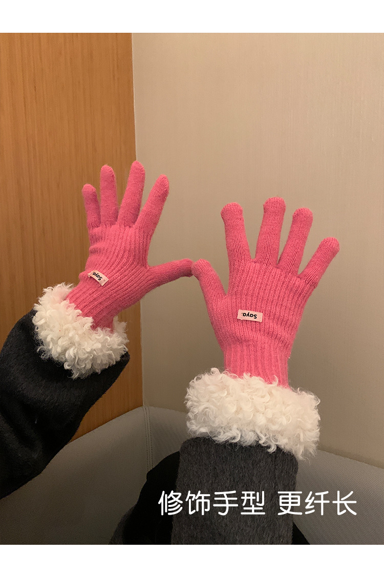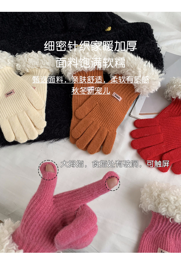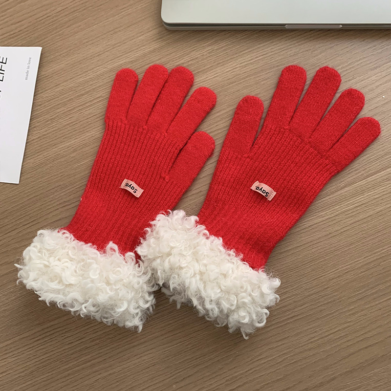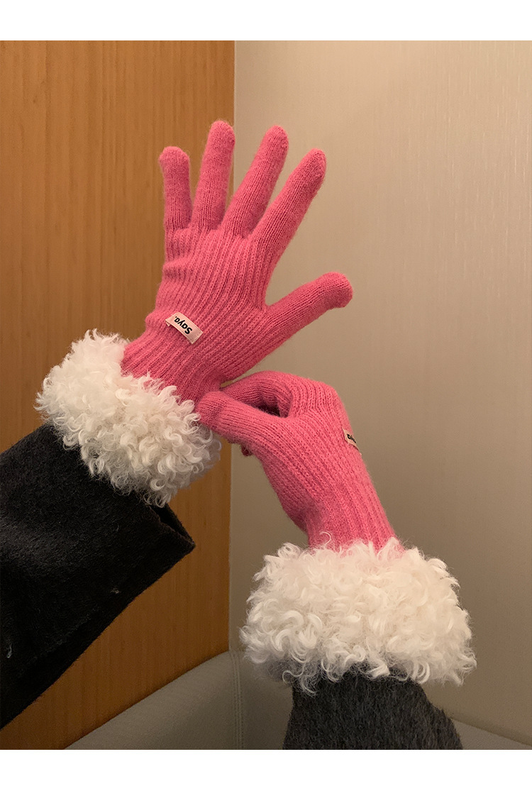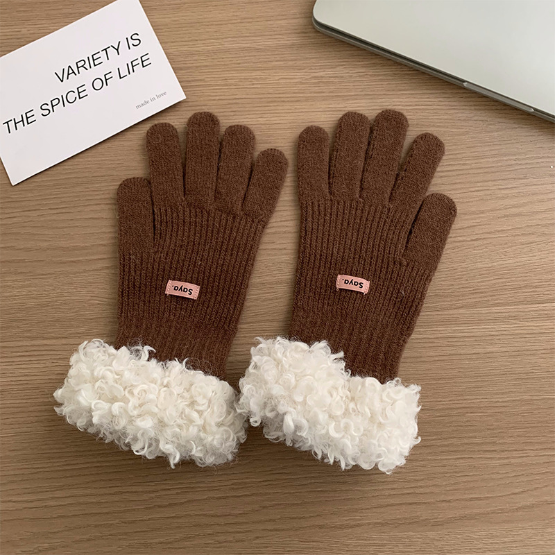 봉제 가장자리 장갑 여성의 겨울 2024 새로운 한국 스타일 니트 따뜻한 사이클링 5 손가락 분리 터치 스크린 방풍 감기