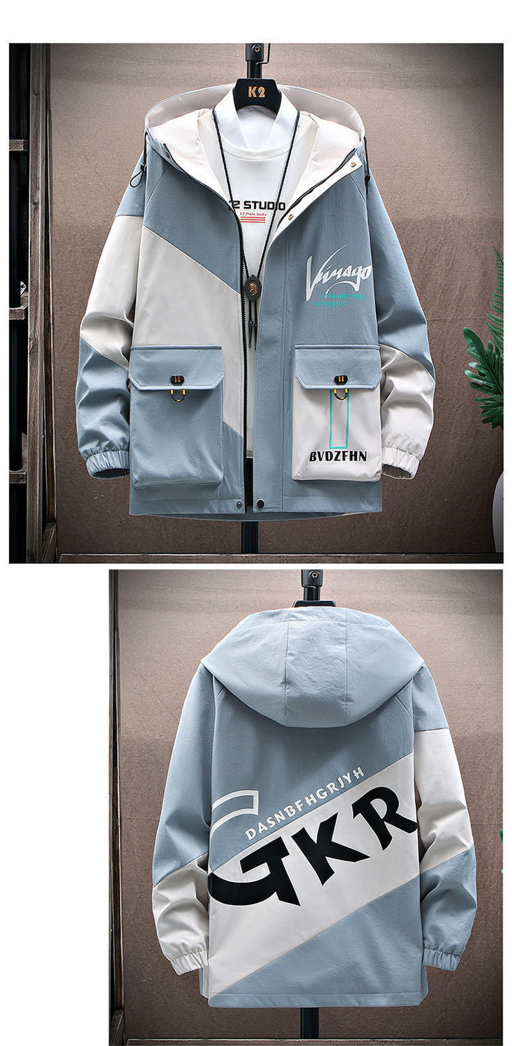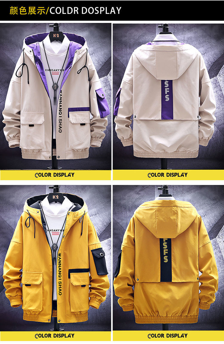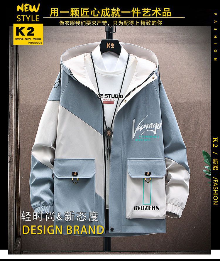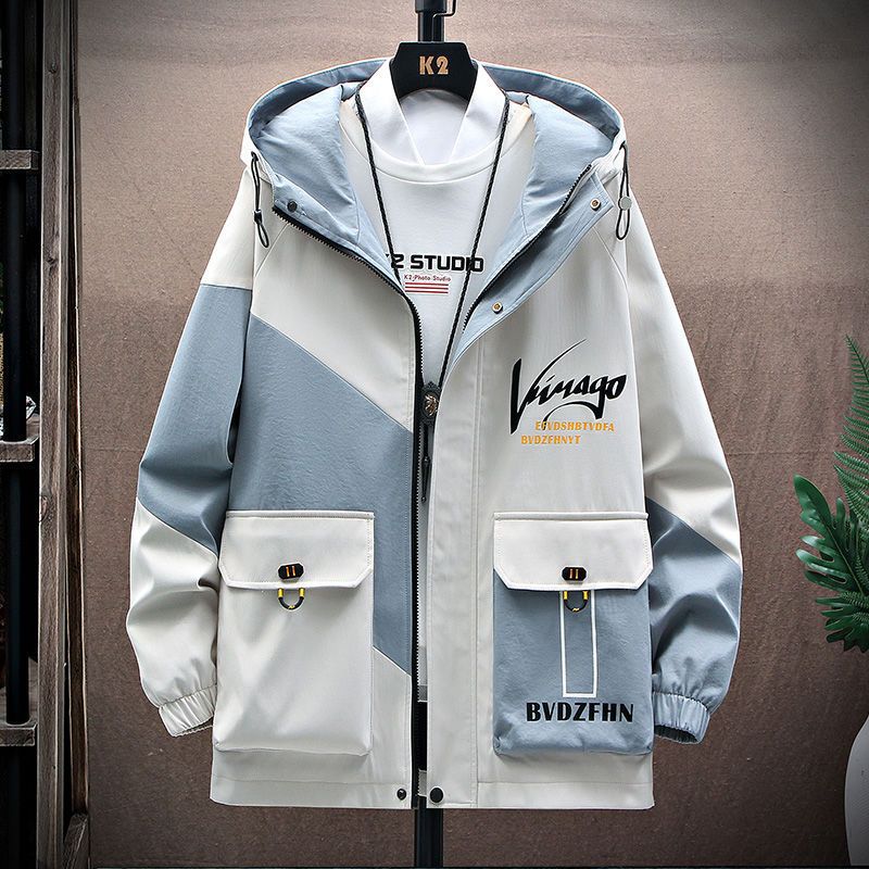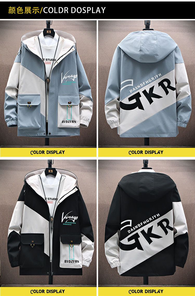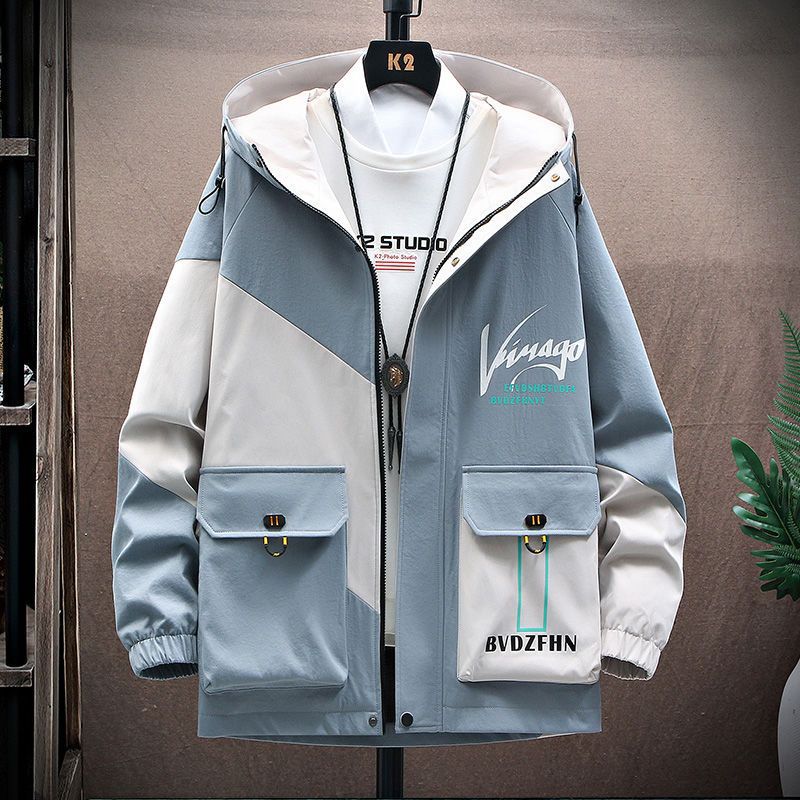 작업복 코트 남성용 봄과 가을 얇은 패셔너블 후드 스프링 자켓 한국식 슬림핏 학생 캐주얼 남성복 레이 홍스토어 가기