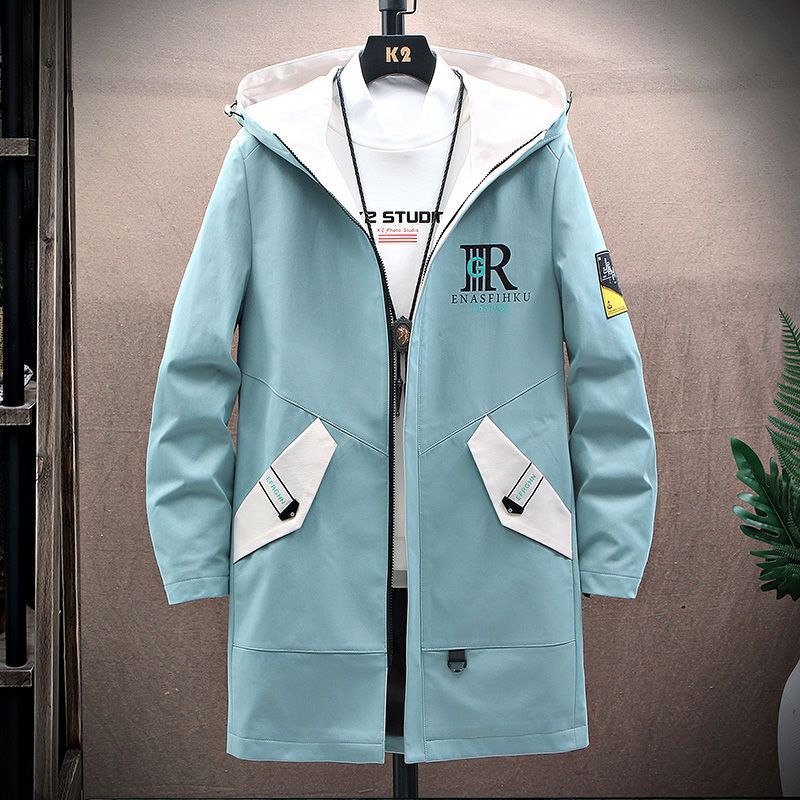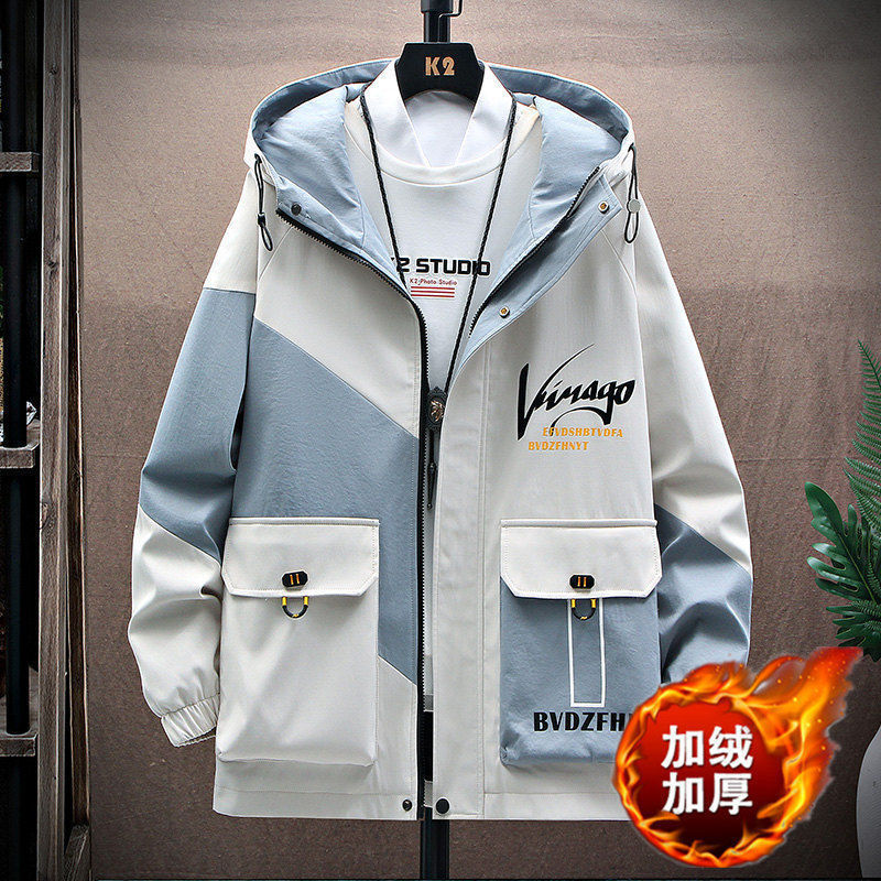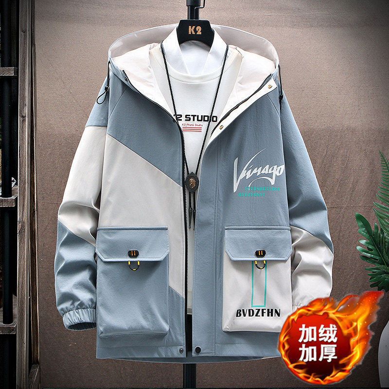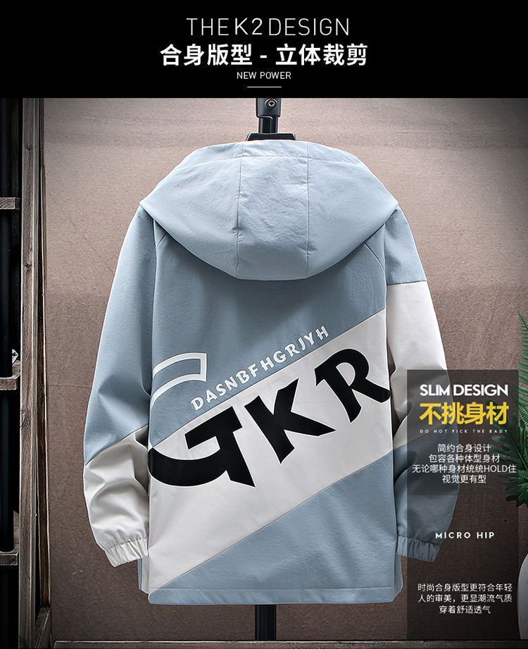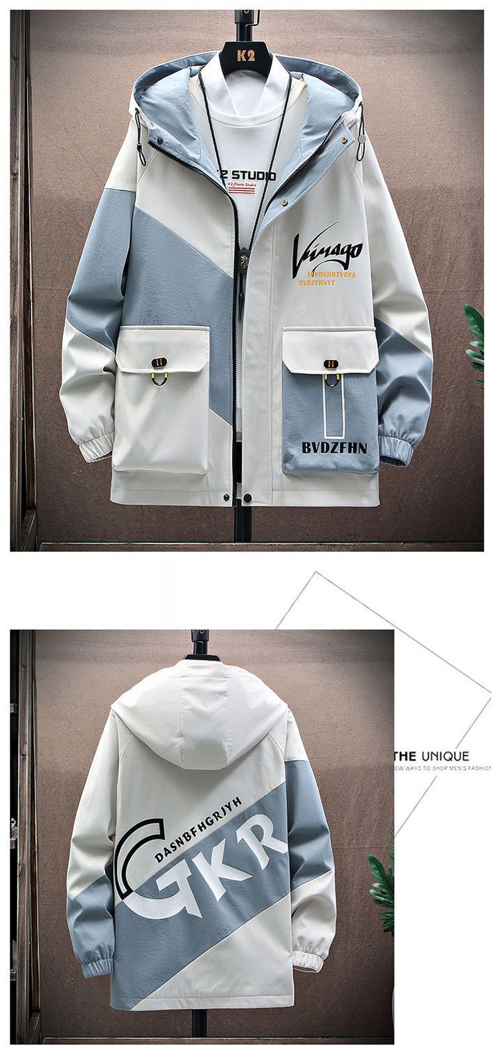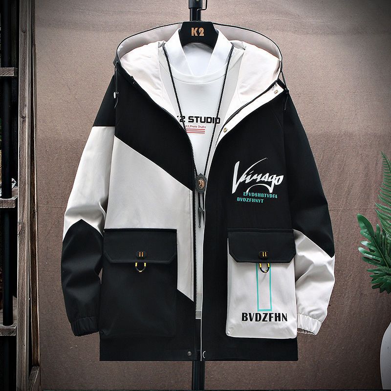 작업복 코트 남성용 봄과 가을 얇은 패셔너블 후드 스프링 자켓 한국식 슬림핏 학생 캐주얼 남성복 레이 홍스토어 가기