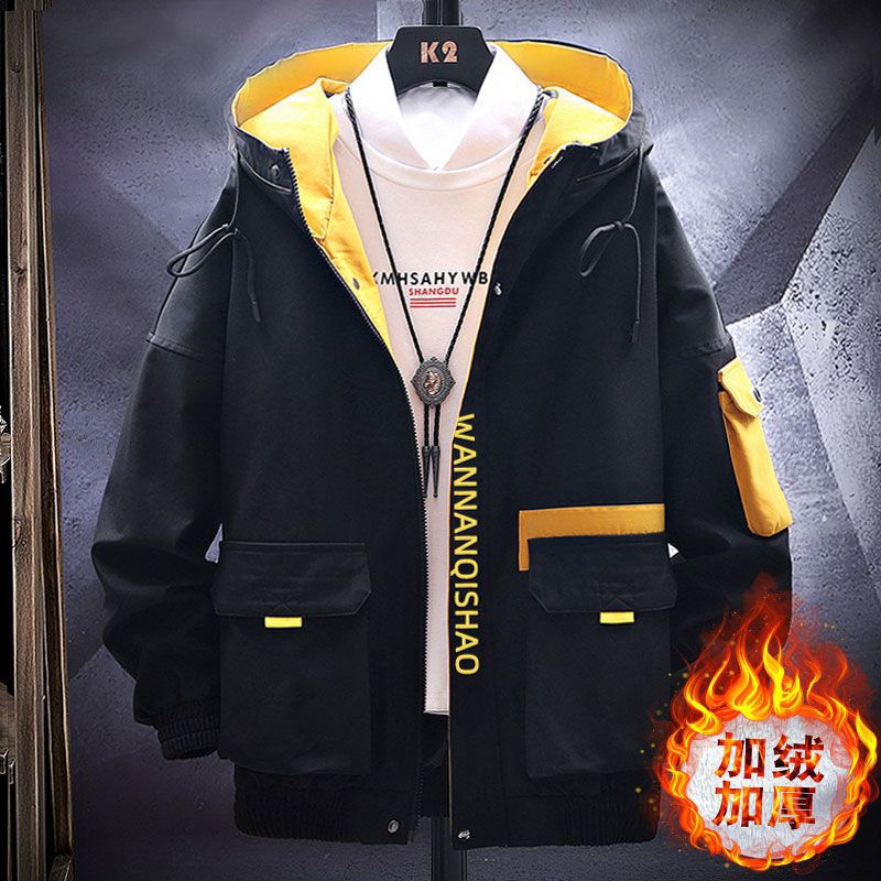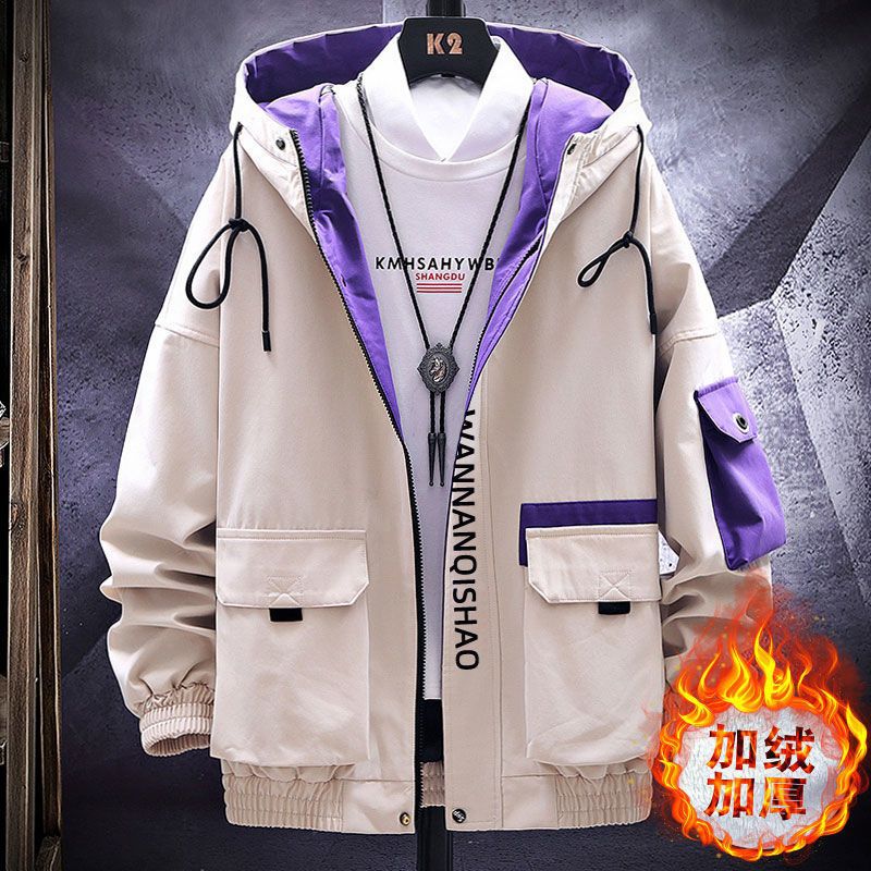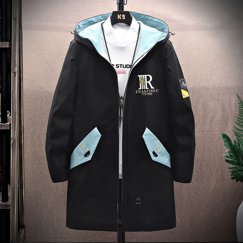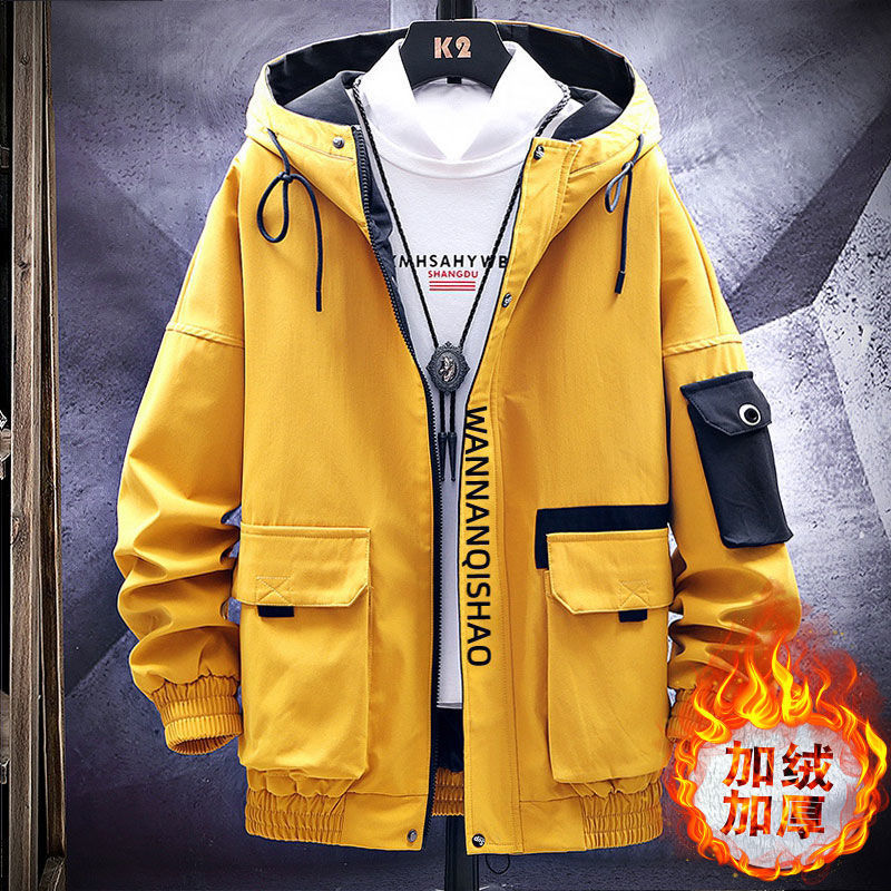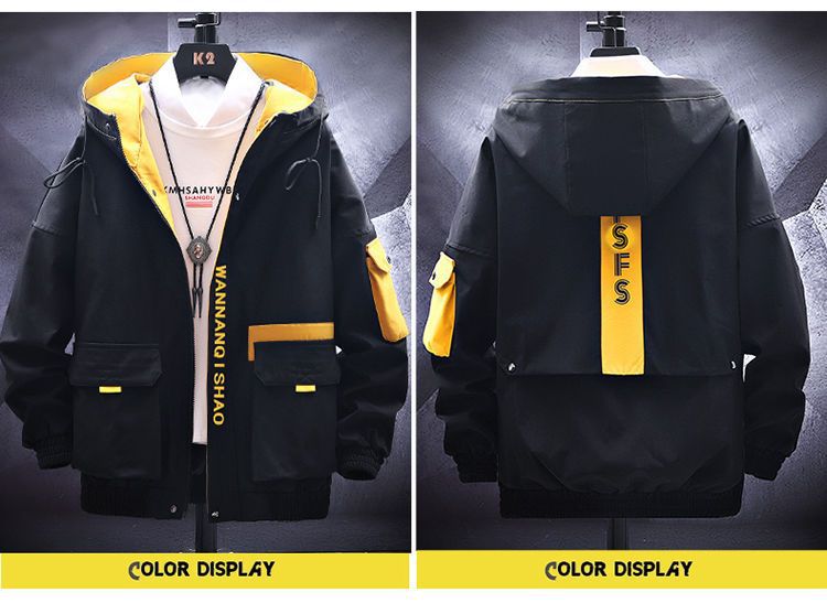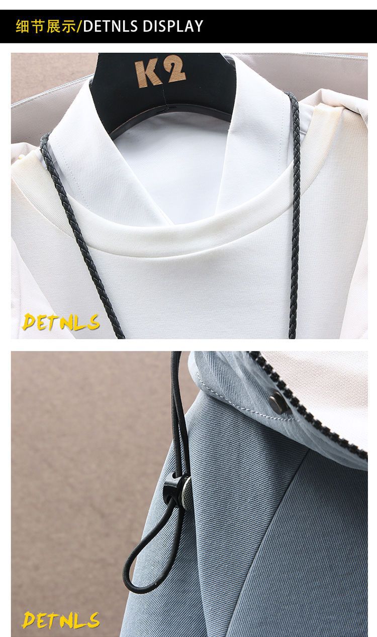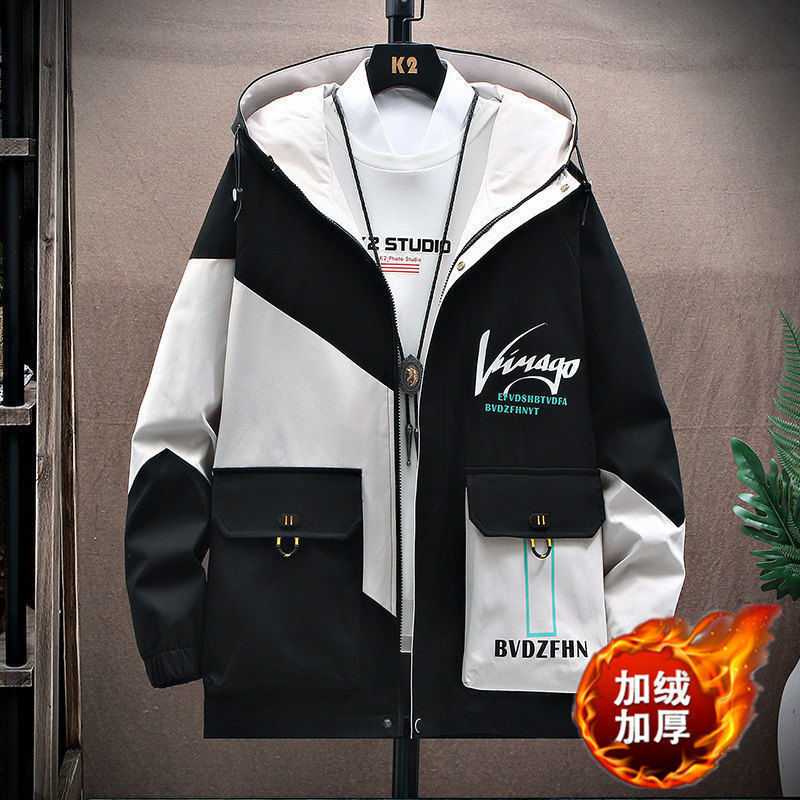 작업복 코트 남성용 봄과 가을 얇은 패셔너블 후드 스프링 자켓 한국식 슬림핏 학생 캐주얼 남성복 레이 홍스토어 가기