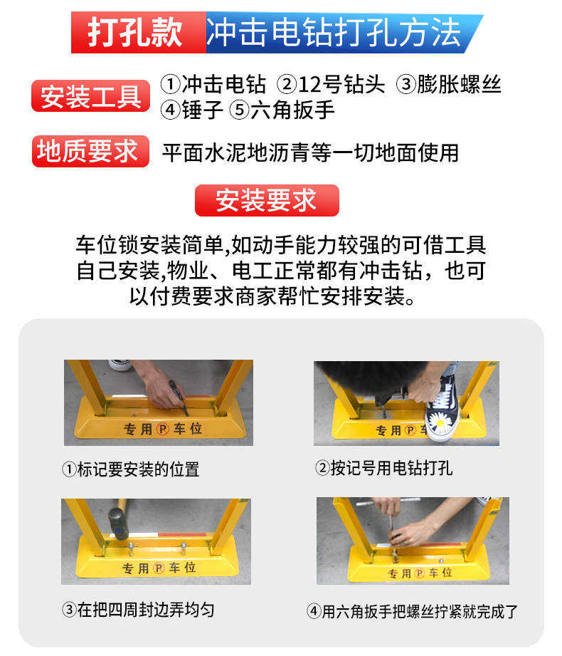 지상 잠금 장치, 주차 공간 잠금 장치, 펀치 없는 주차 공간, 지상 말뚝, 절차 방지, 두꺼운 충돌 방지 삼각형 자동차 차단 장치, Changling스토어 가기