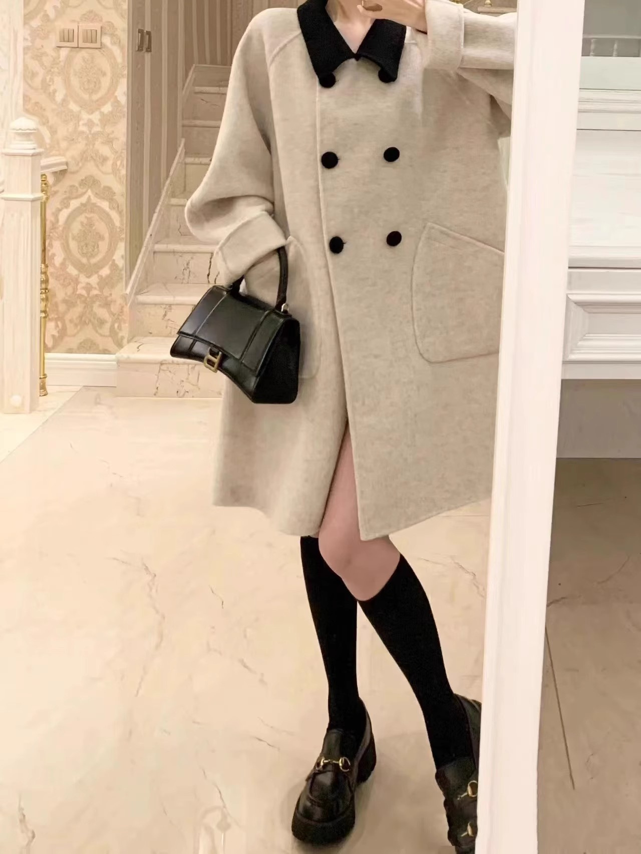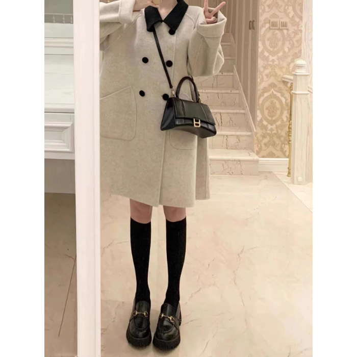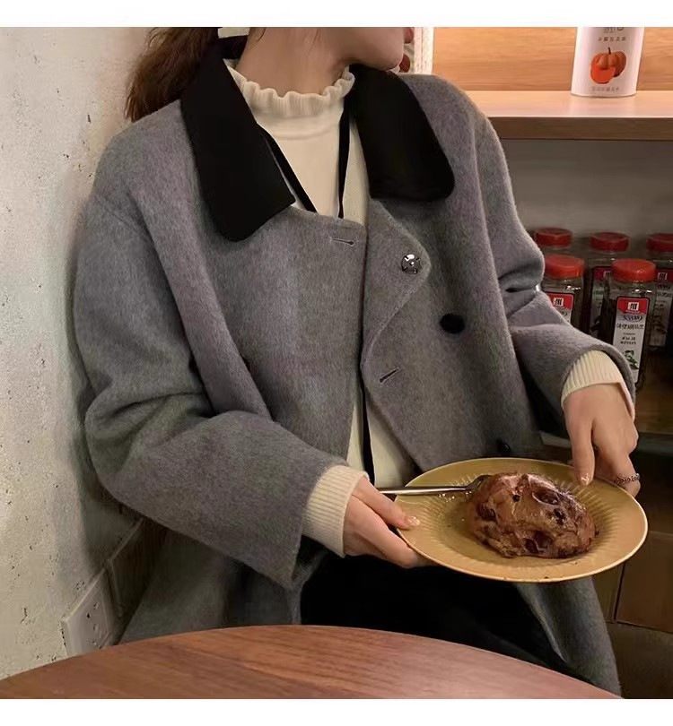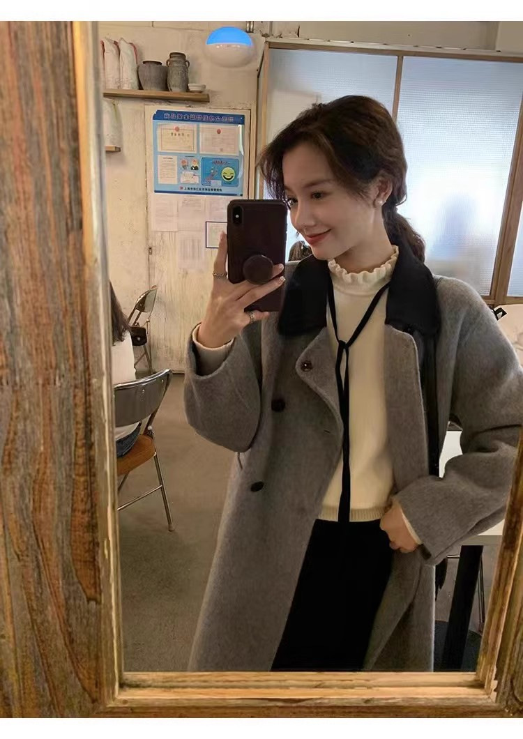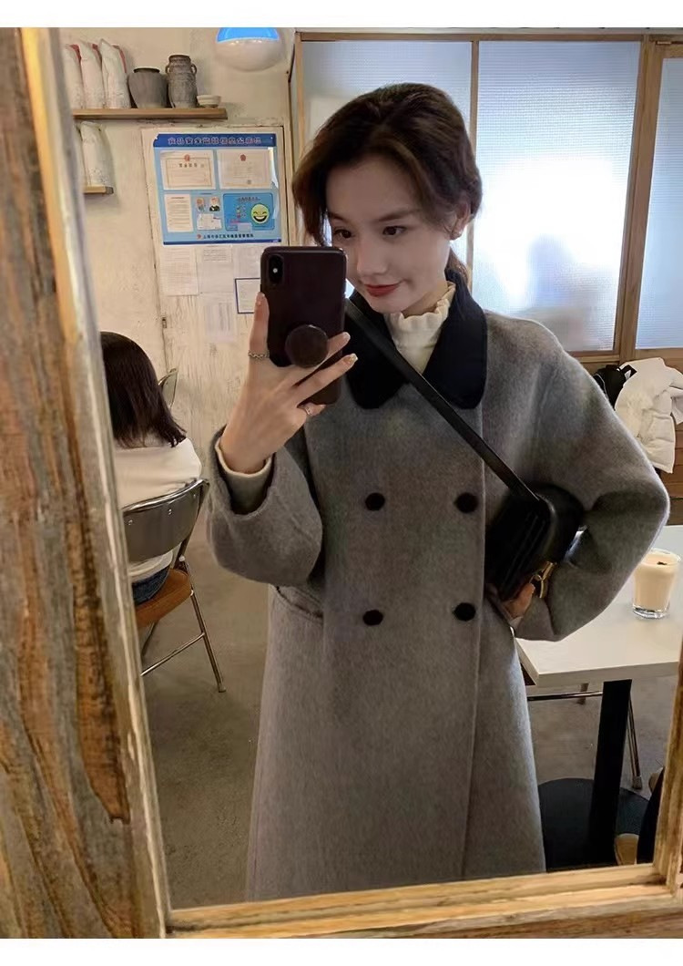 모직 코트 여성 가을과 겨울 하이 엔드 센스 작은 중간 길이의 한국식 루즈 컬러 매칭 우아한 모직 코트 트렌디스토어 가기
