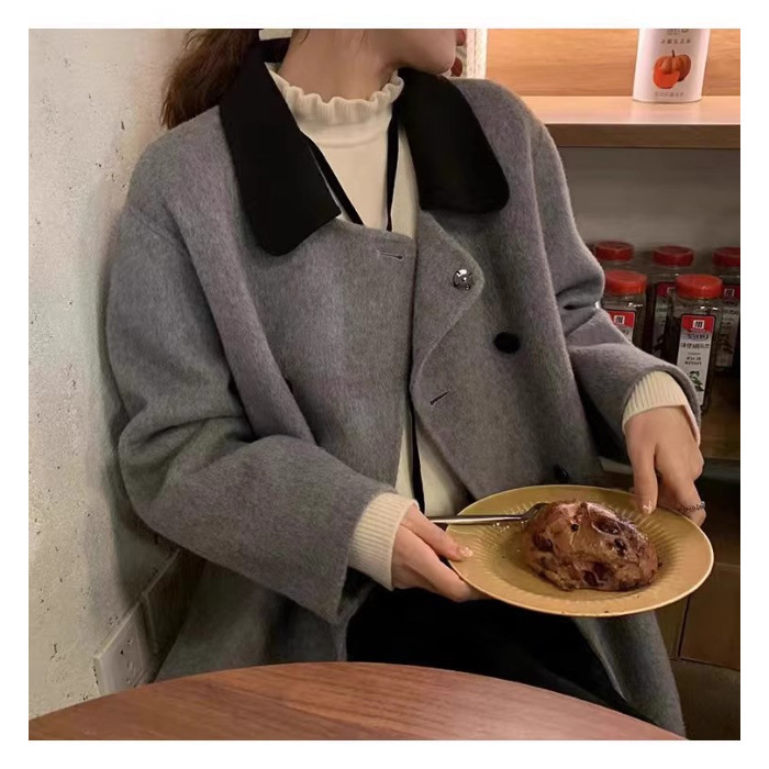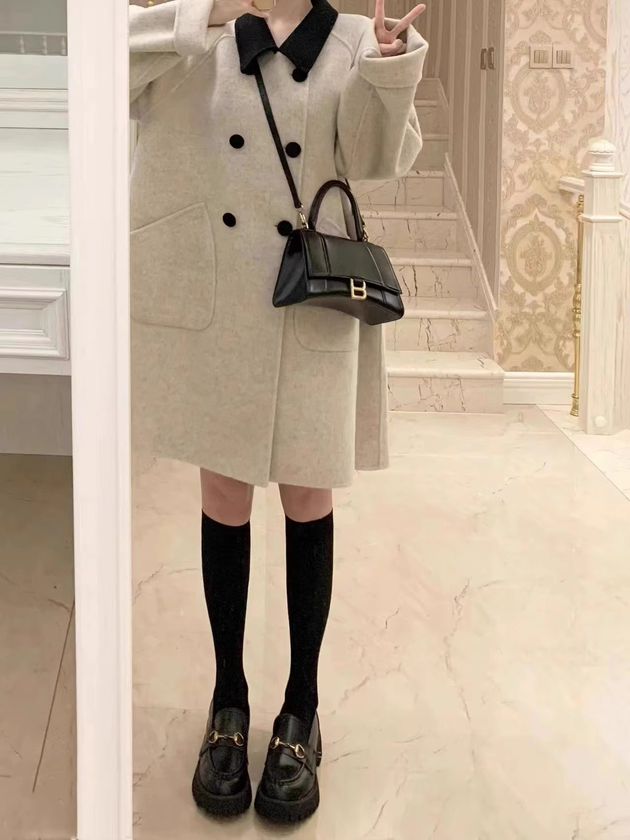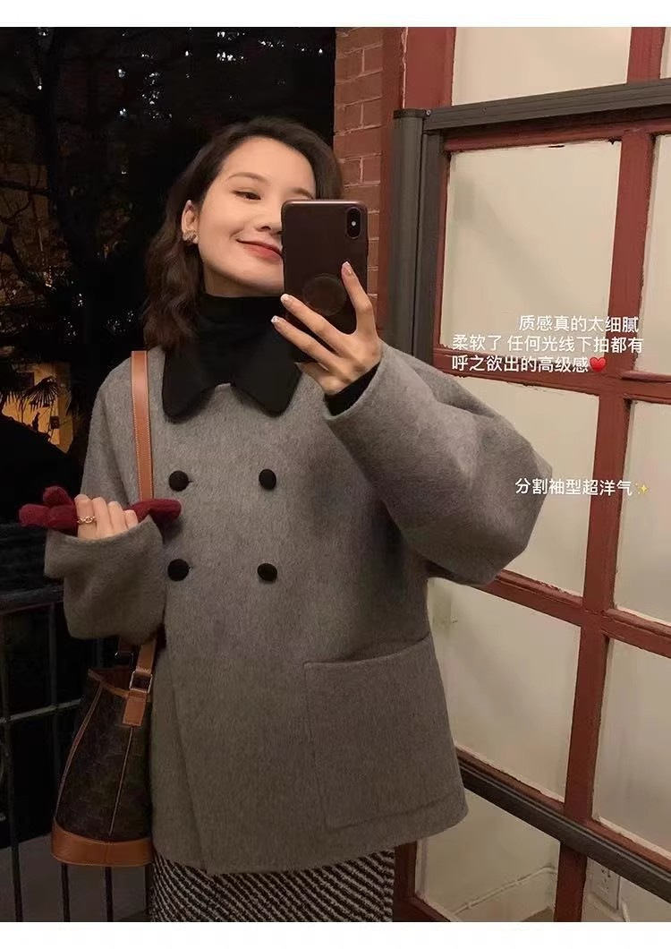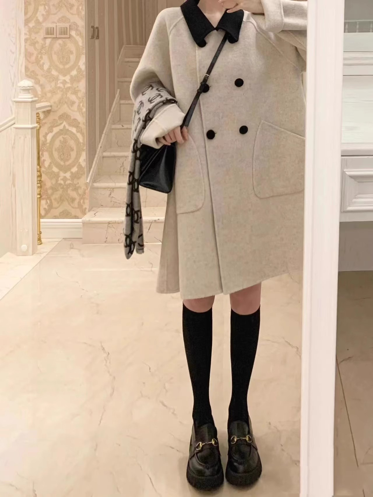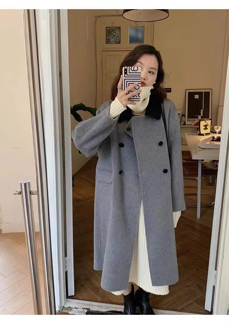 모직 코트 여성 가을과 겨울 하이 엔드 센스 작은 중간 길이의 한국식 루즈 컬러 매칭 우아한 모직 코트 트렌디스토어 가기