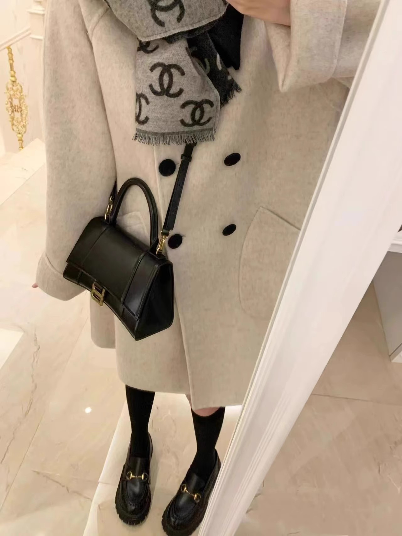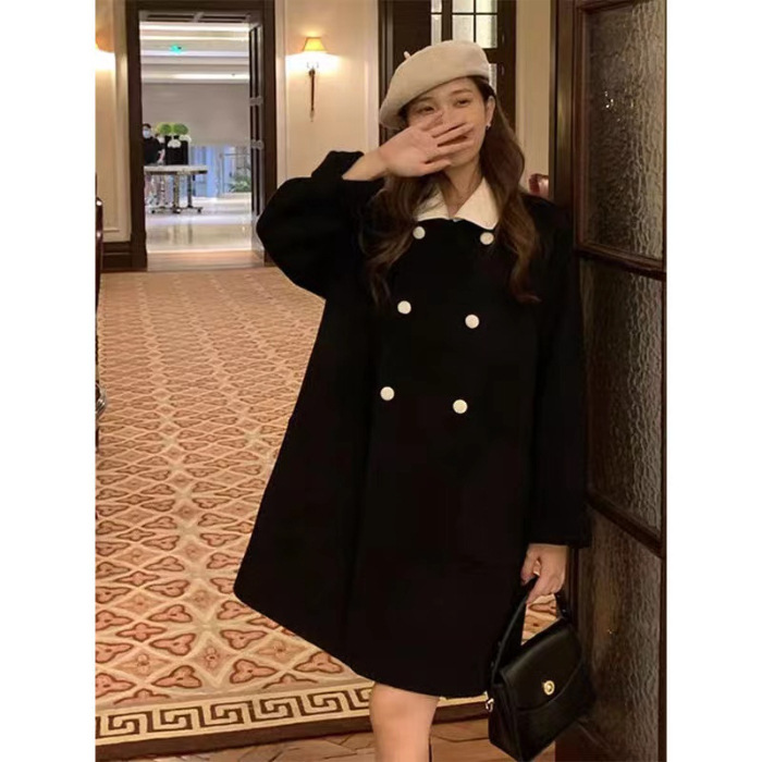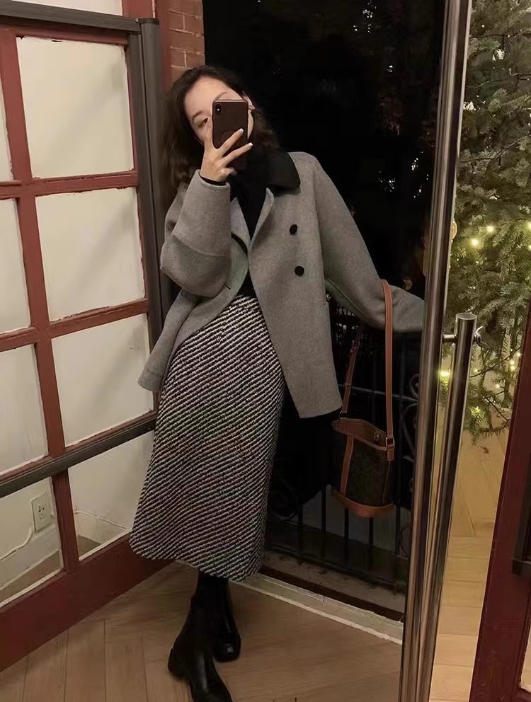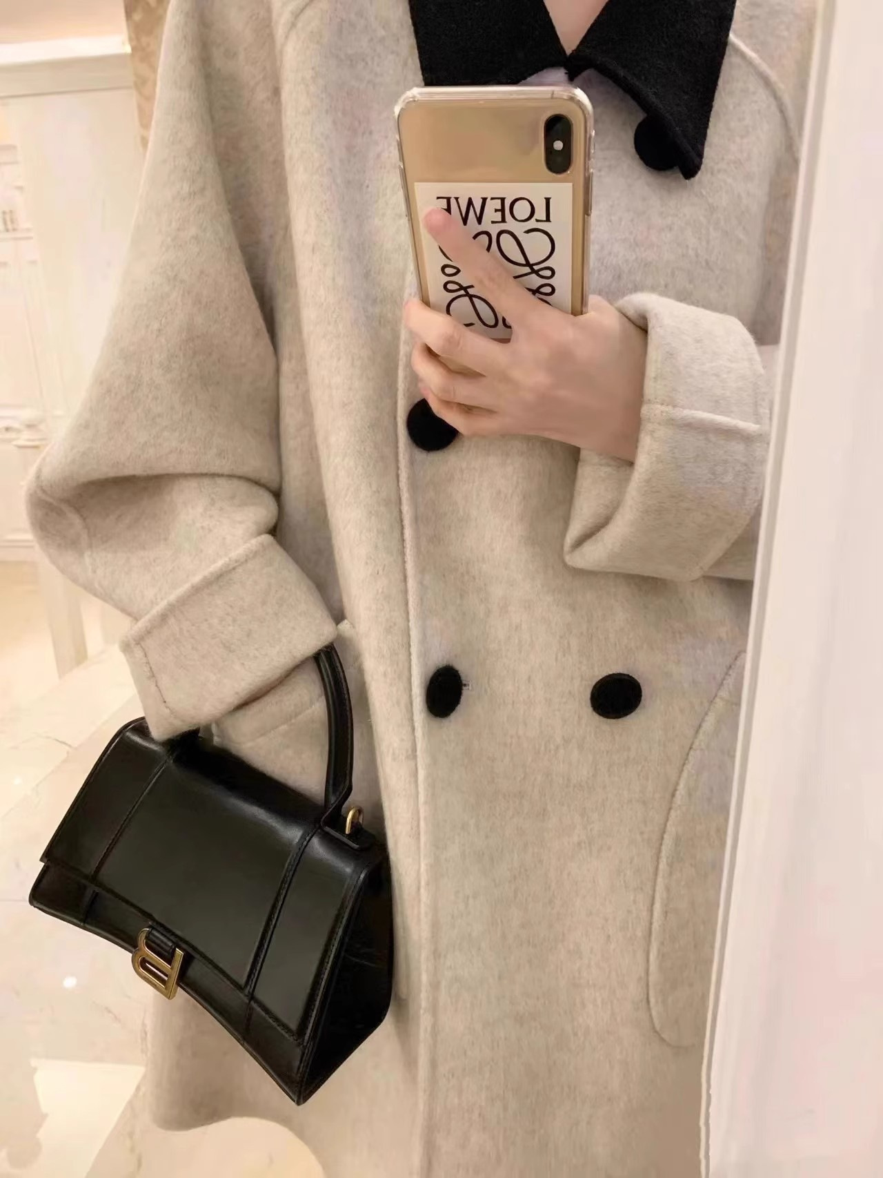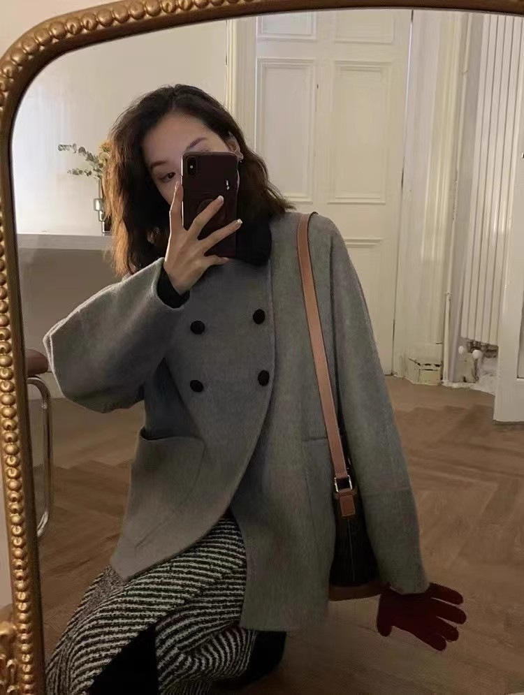 모직 코트 여성 가을과 겨울 하이 엔드 센스 작은 중간 길이의 한국식 루즈 컬러 매칭 우아한 모직 코트 트렌디스토어 가기