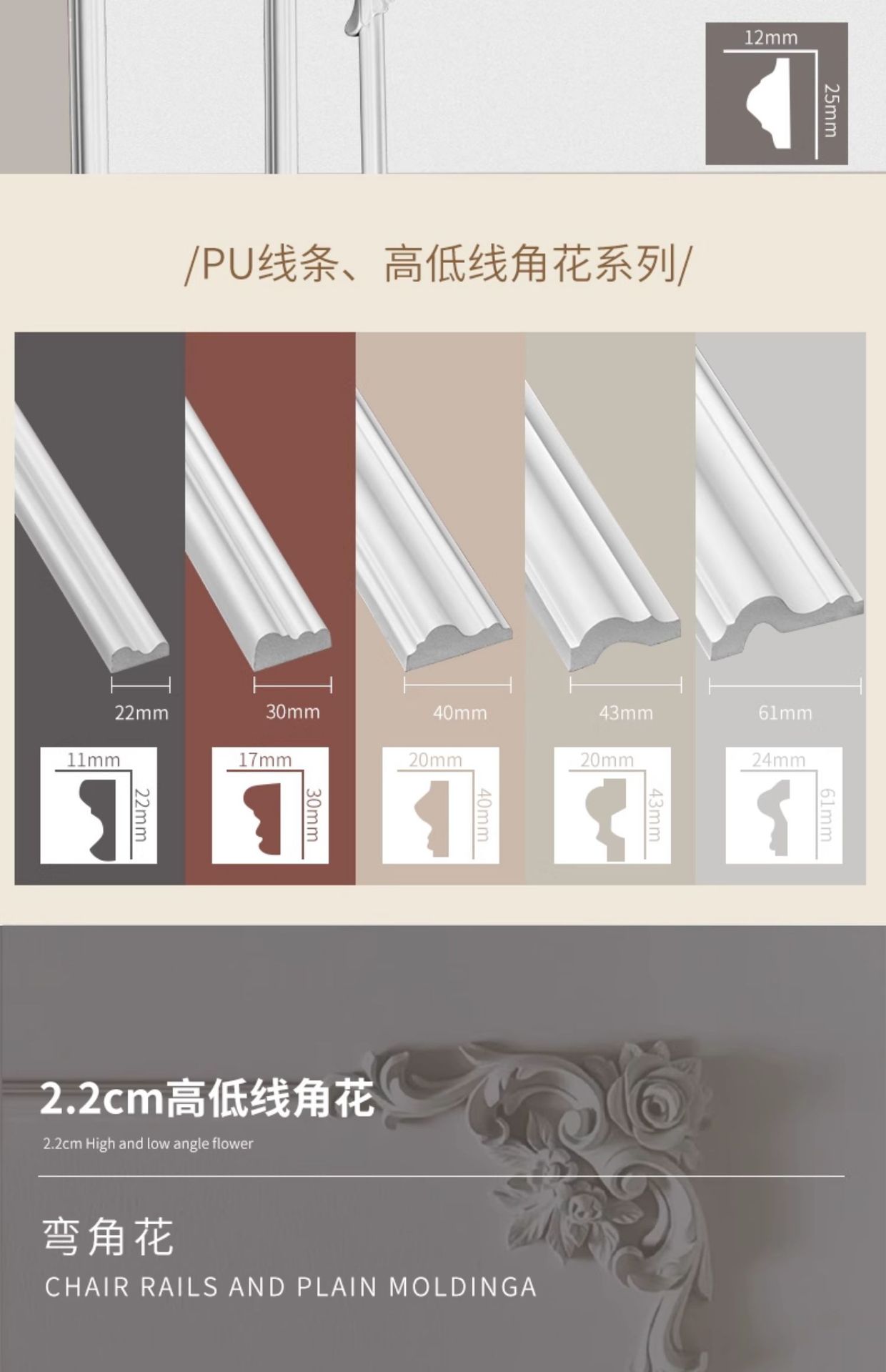PU 라인 프랑스 TV 배경 벽 국경 장식 스트립 모델링 라인 유럽 천장 천장 코너 꽃 모방 석고 라인
