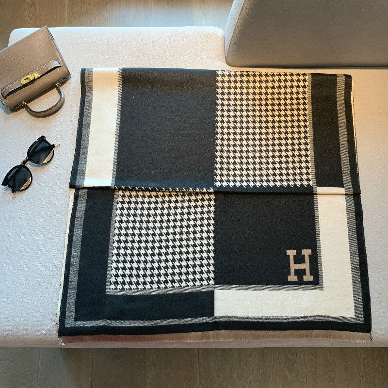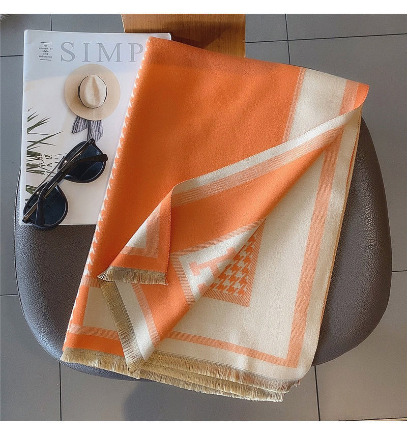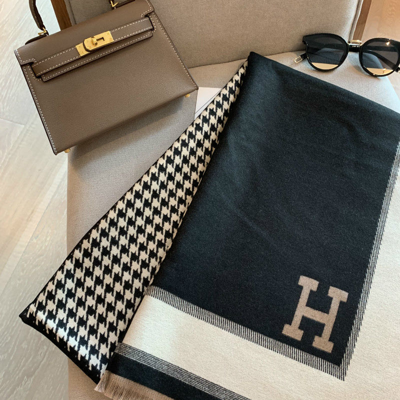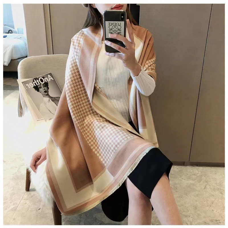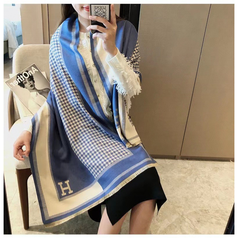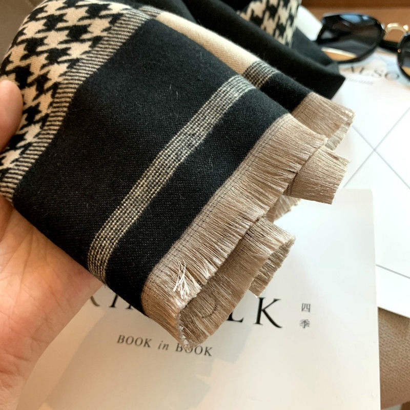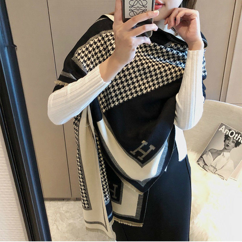 인터넷으로 유명한 하운스 투스 양면 캐시미어 스카프 목도리 여자 겨울 올 매치 숄리 한국식 H-글자 스카프 따뜻하게 유지