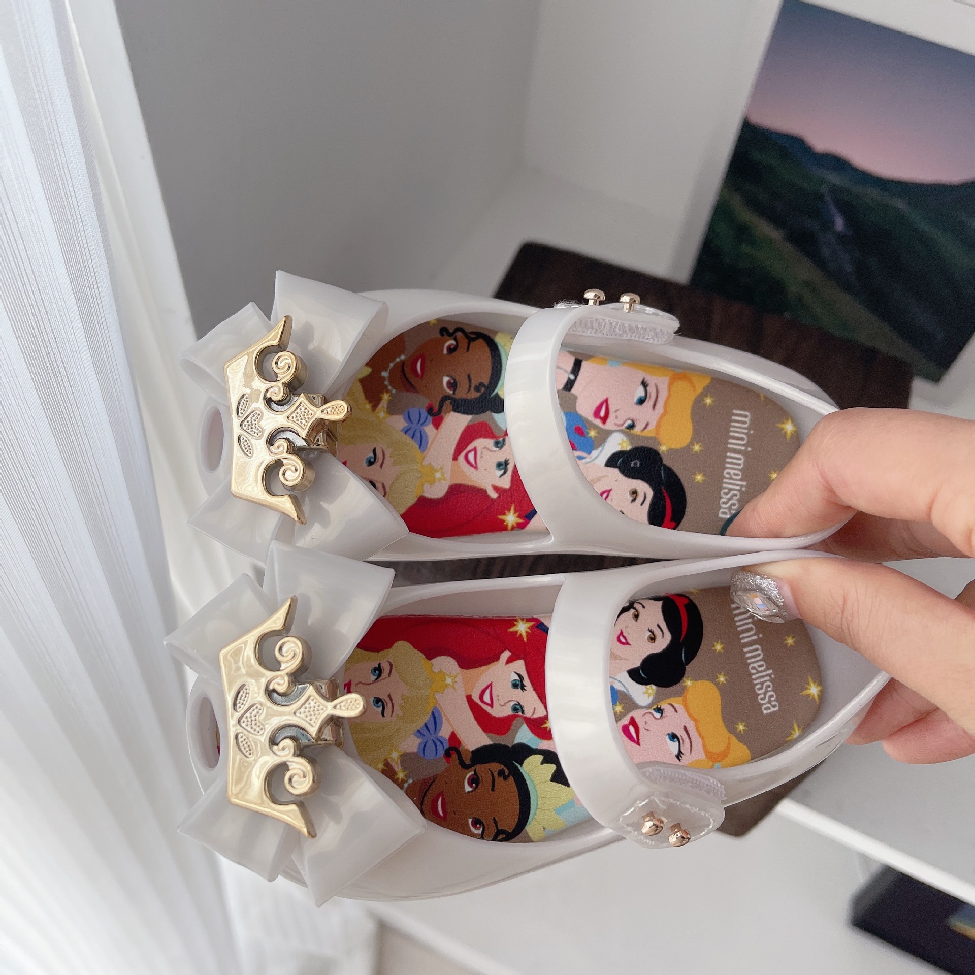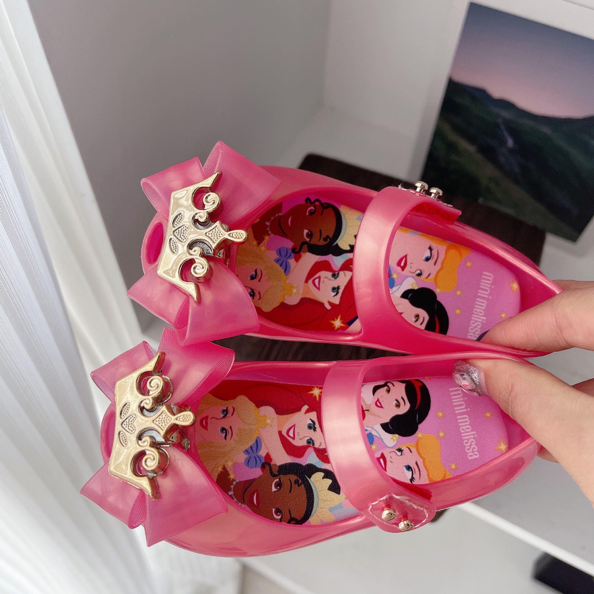 2025 새로운 멜리사 어린이 신발 어린이 젤리 신발 크라운 활 공주 샌들