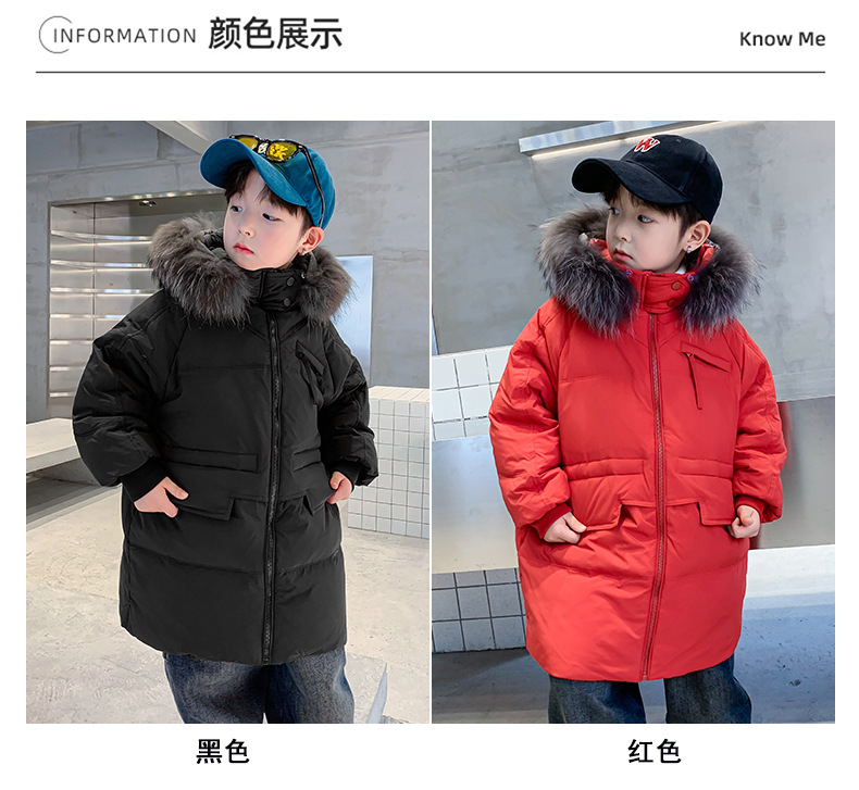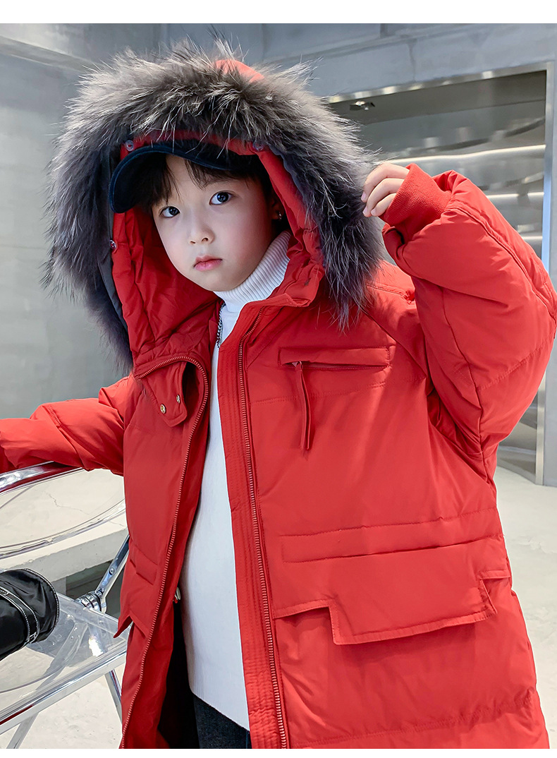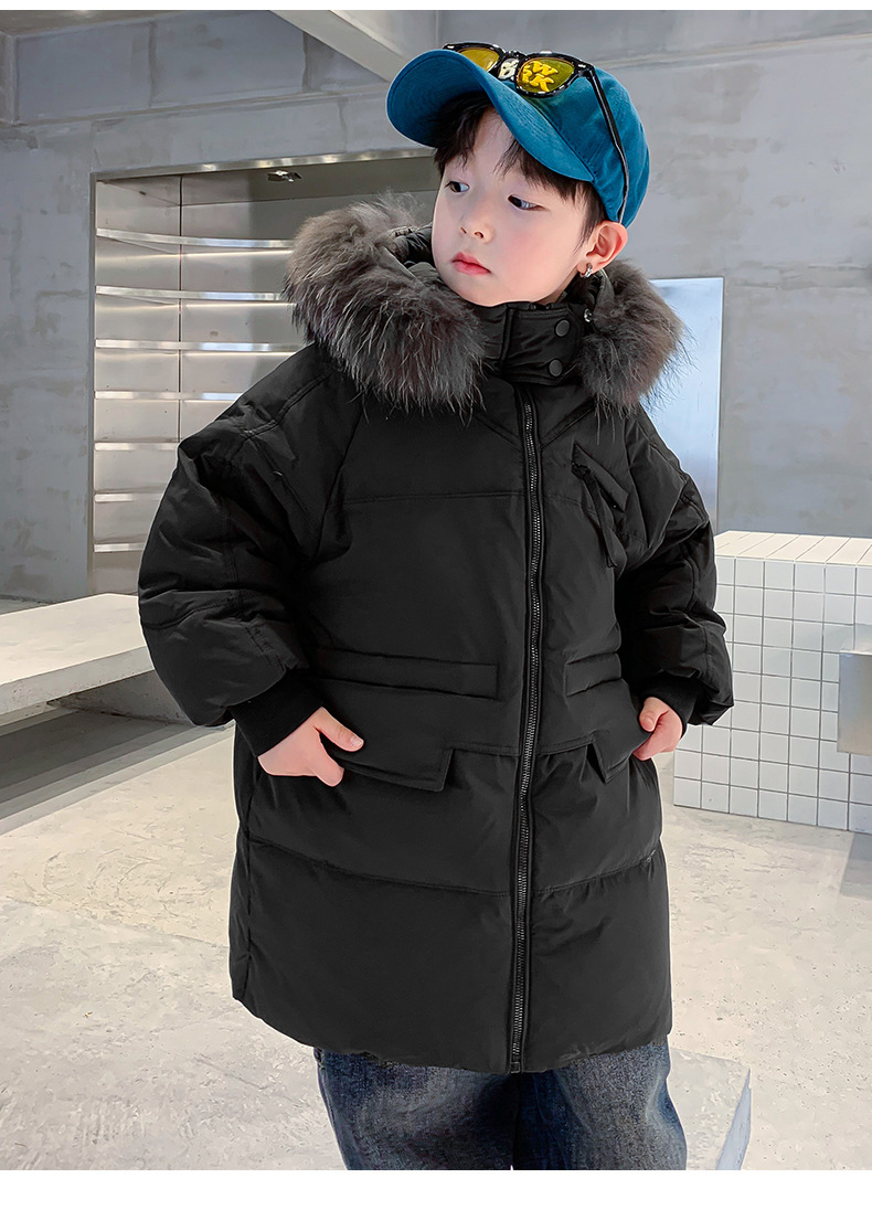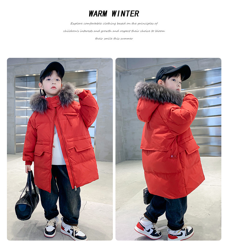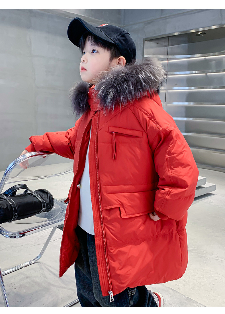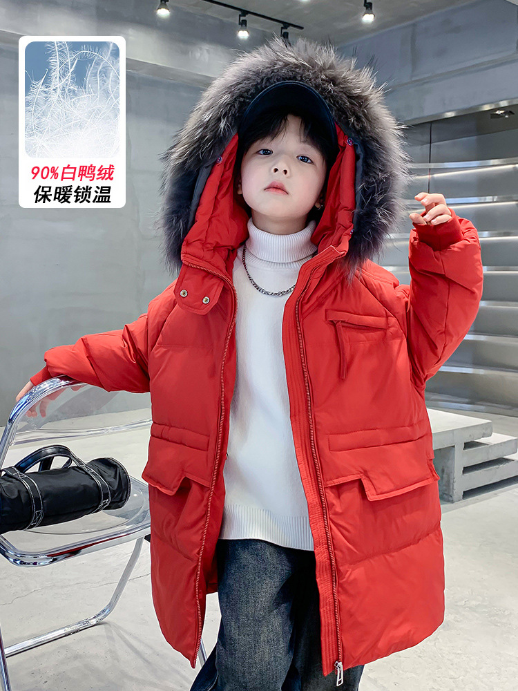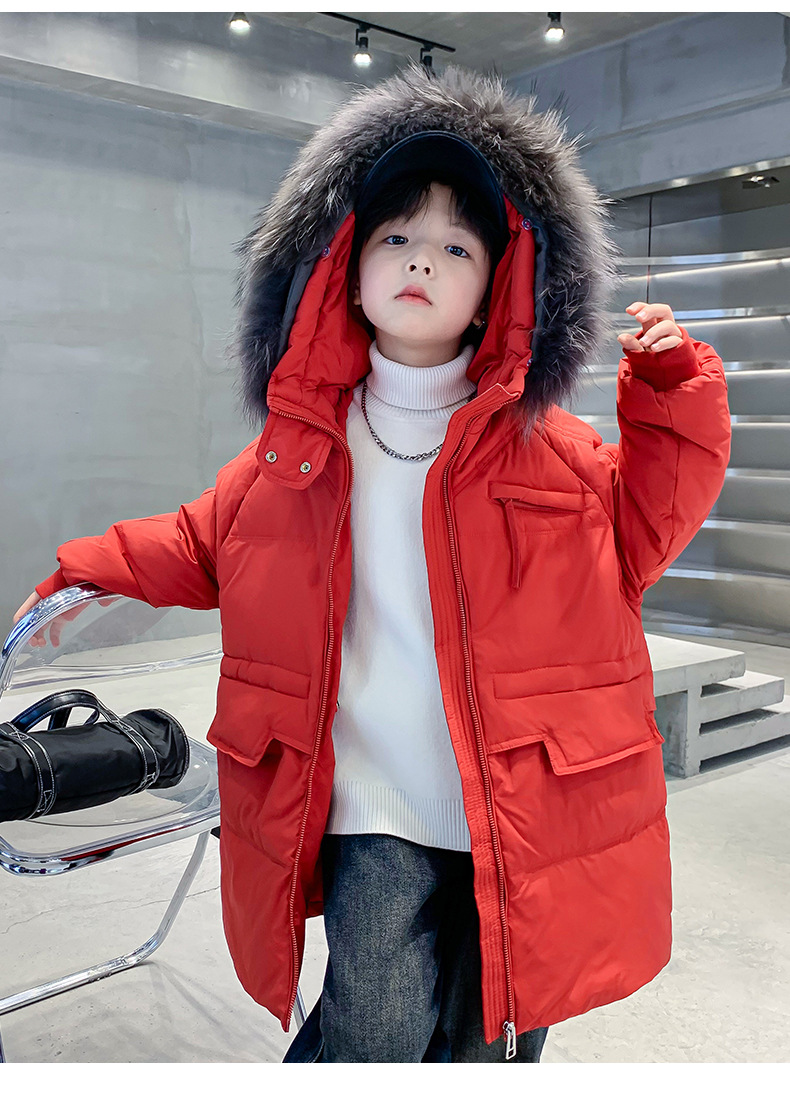 소년의 경량 다운 재킷 겨울 중간 길이 2024 새로운 대형 어린이 소년 겨울 옷 유행 브랜드 두꺼운 재킷