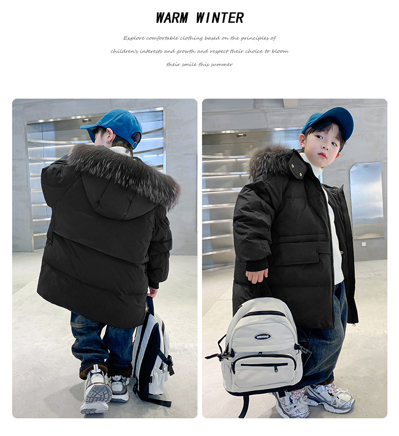 소년의 경량 다운 재킷 겨울 중간 길이 2024 새로운 대형 어린이 소년 겨울 옷 유행 브랜드 두꺼운 재킷스토어 가기