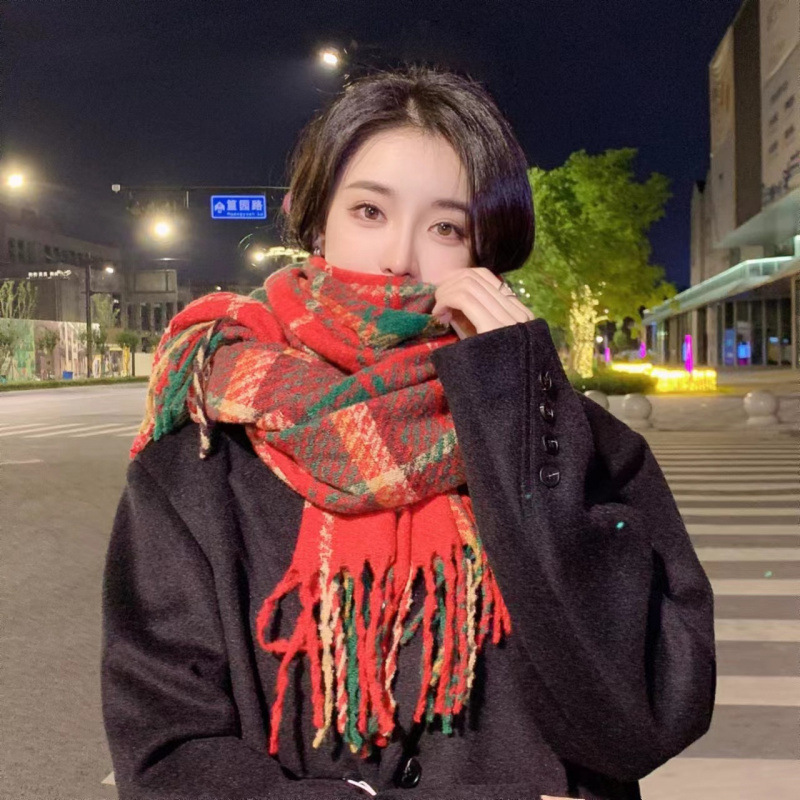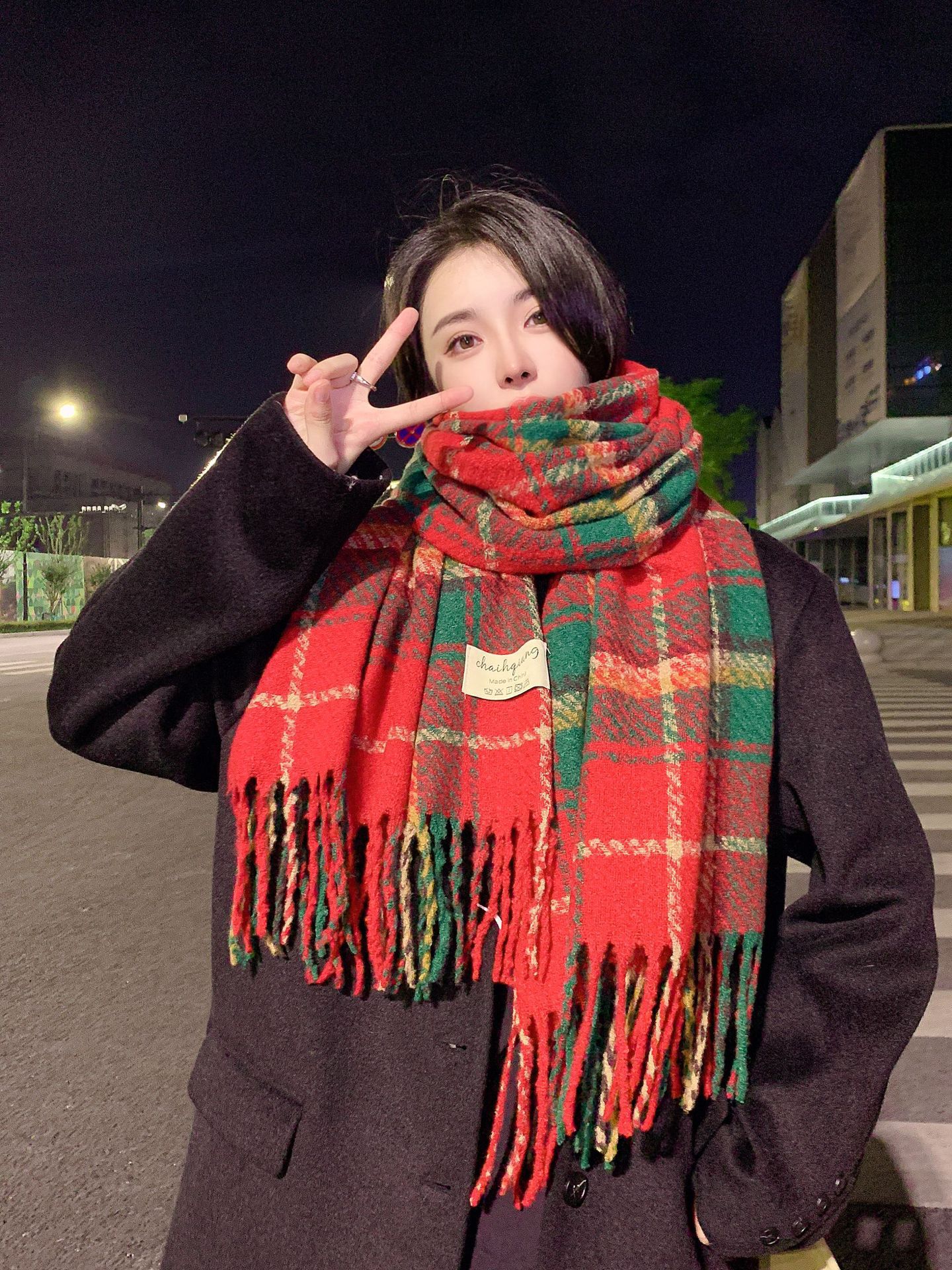 크리스마스 폭발 레드 하이 엔드 감각 모방 캐시미어 스카프 겨울 올 매치 양면 목도리 듀얼 사용 남녀 공명 스카프스토어 가기