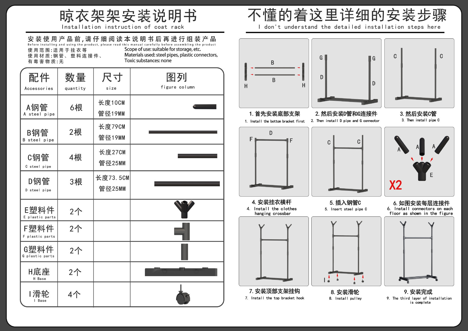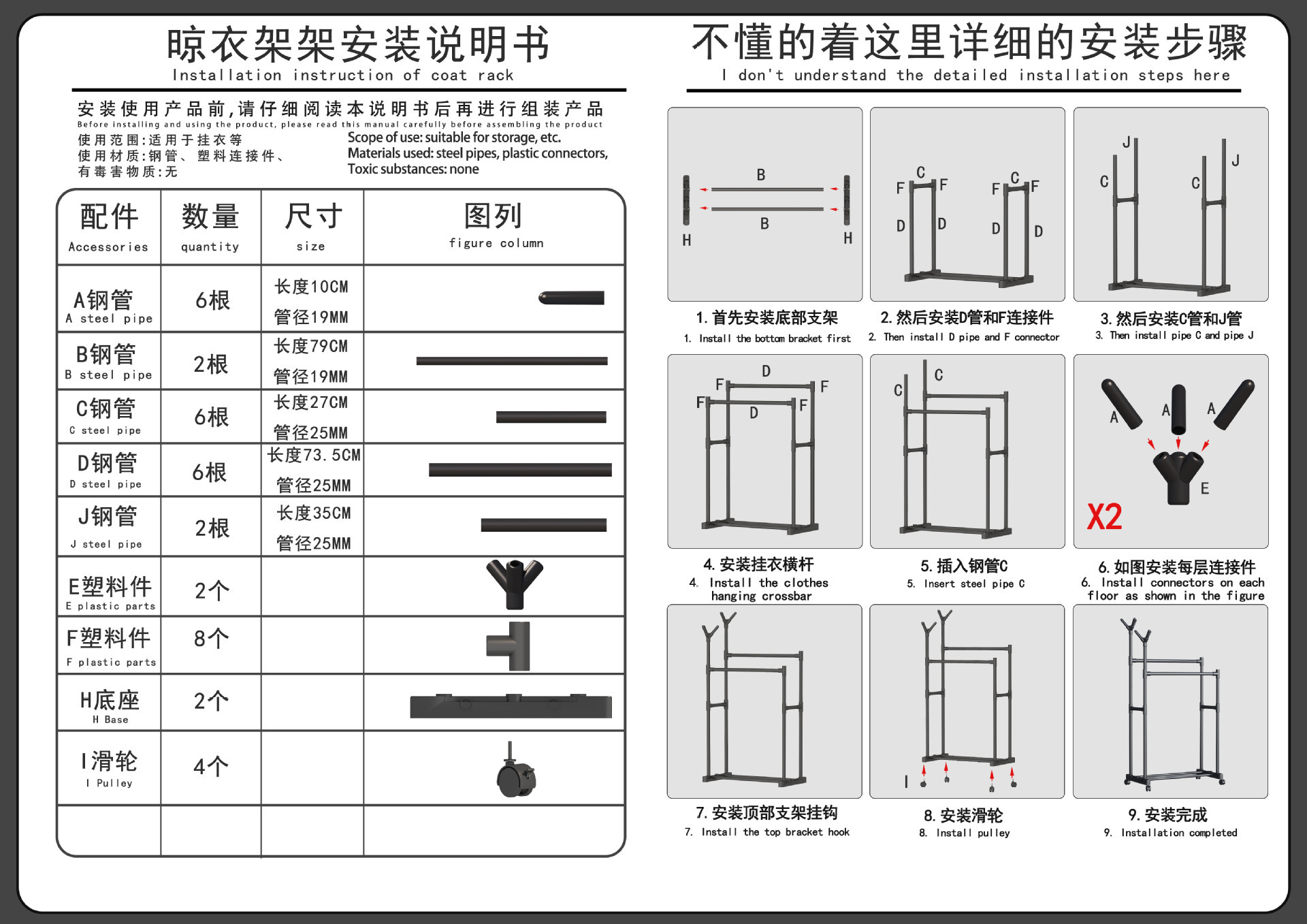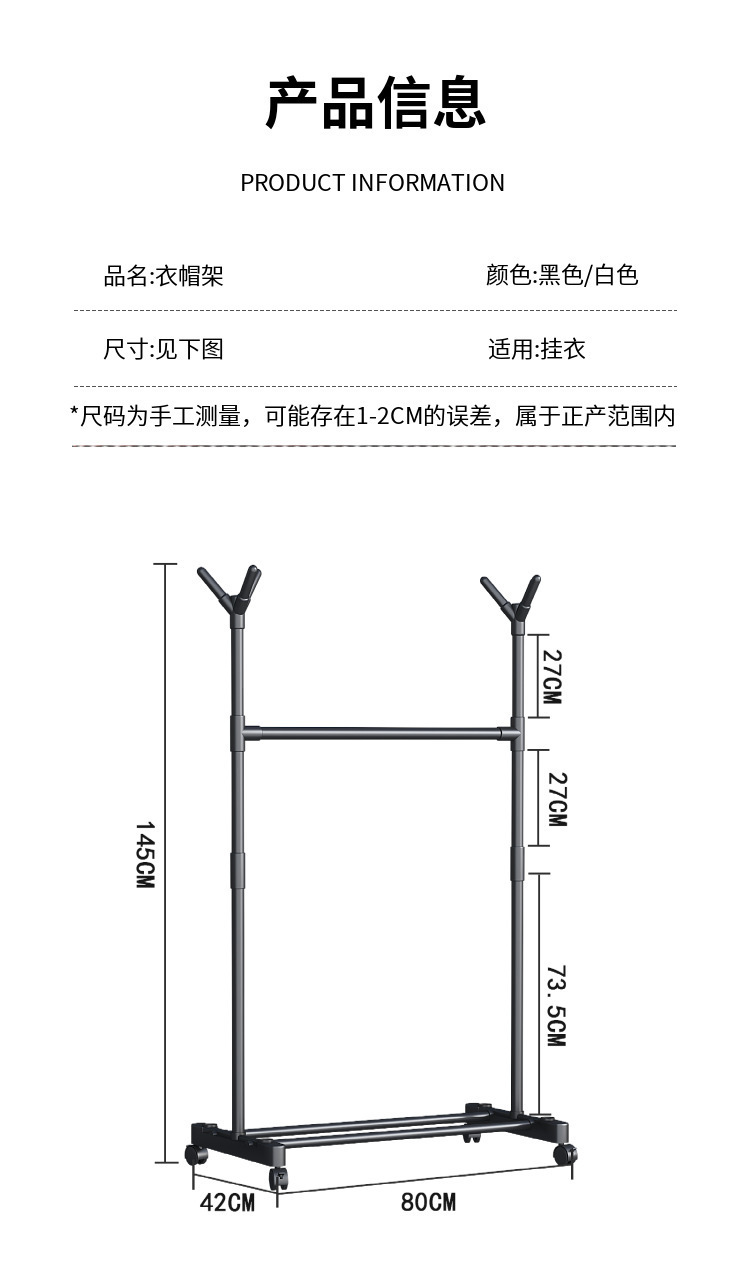 商品尺寸 单杆80*42*145cm/双杆80*42*155cm