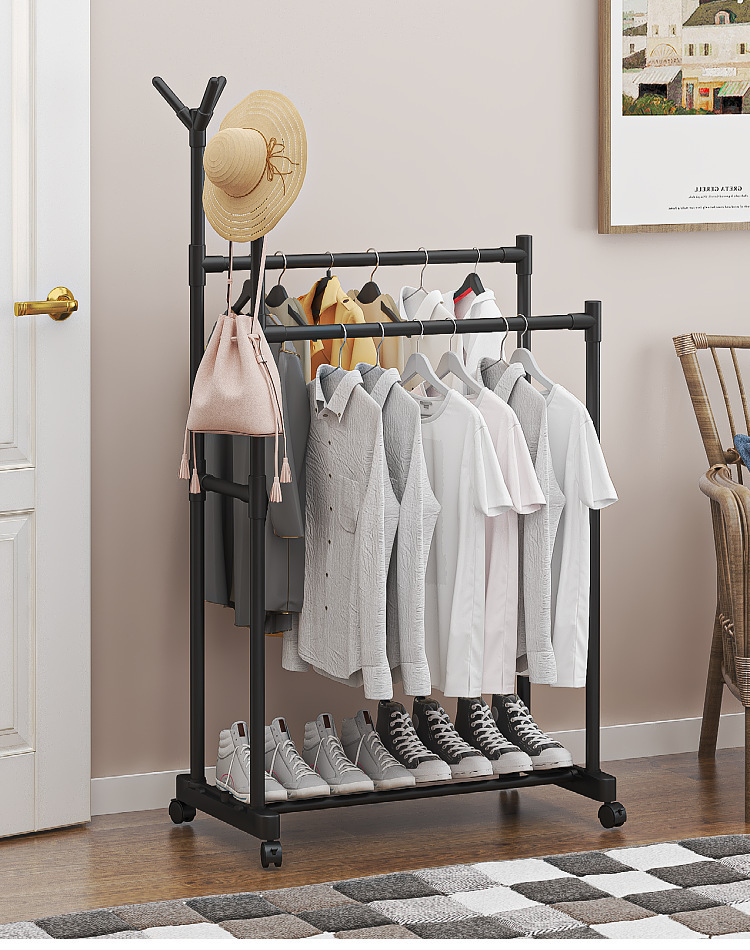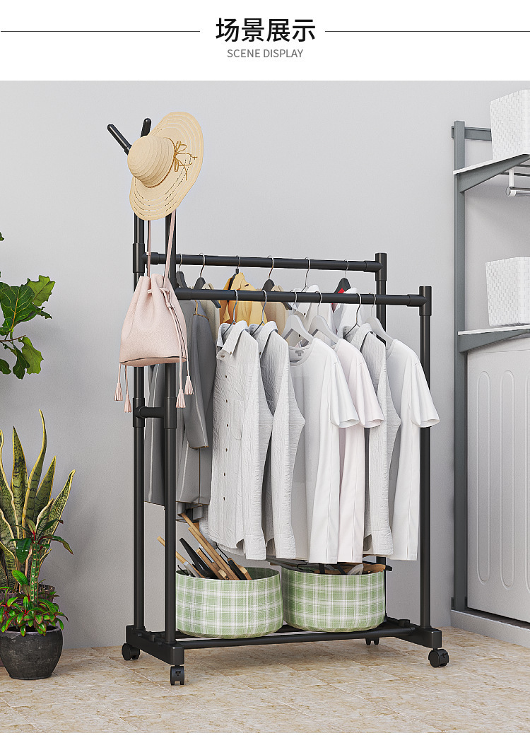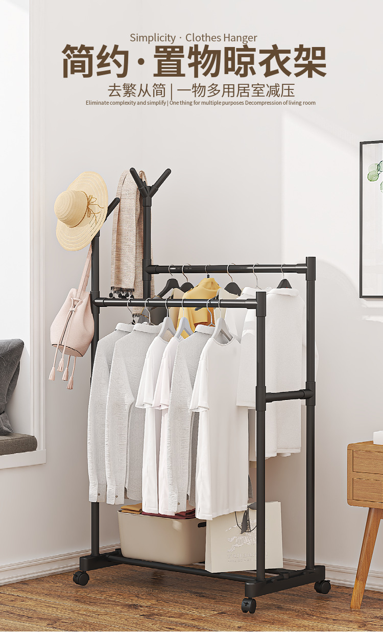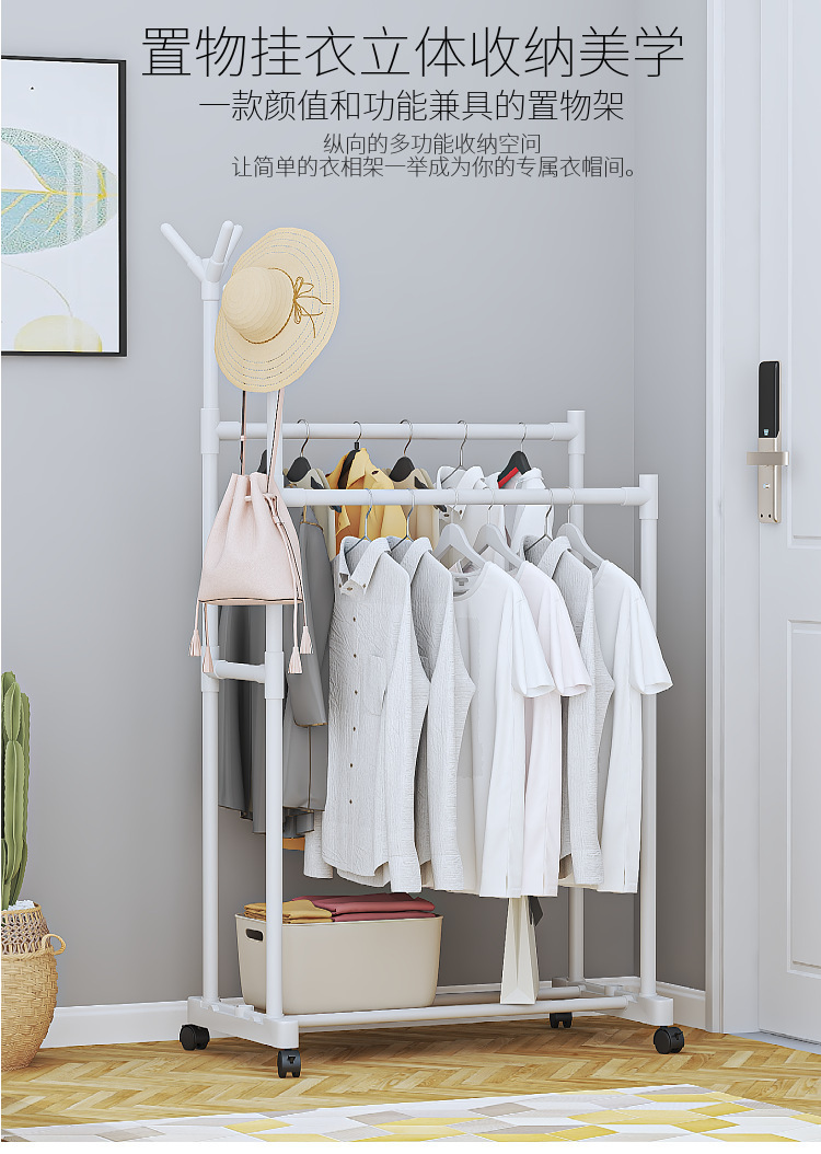 새로운 가정용 간단한 더블로드 건조 랙 스토리지 랙 침실 바닥 걸이 코트 랙 신발 및 모자 랙