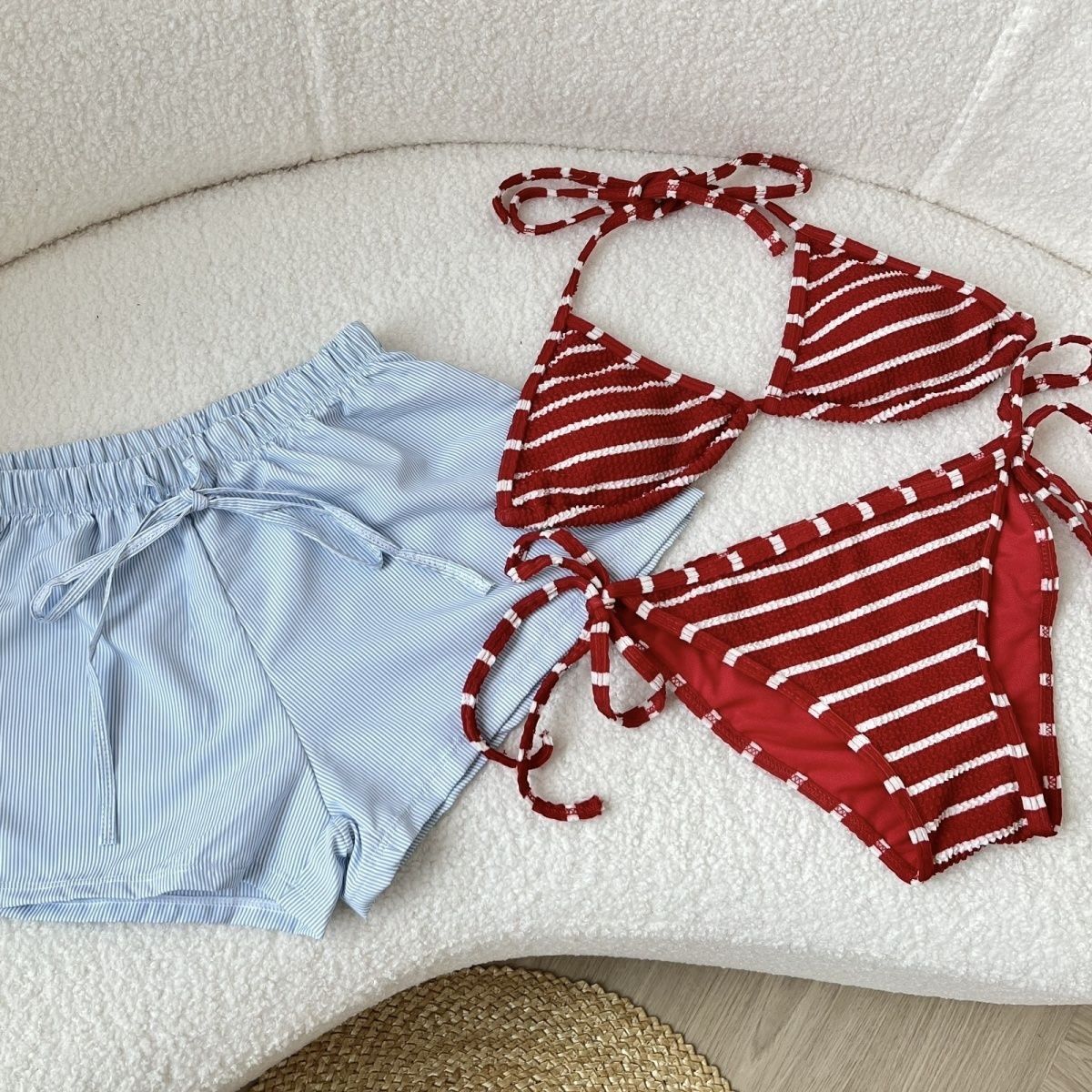 • 빨간색 줄무늬 비키니 + 파란색 줄무늬 반바지