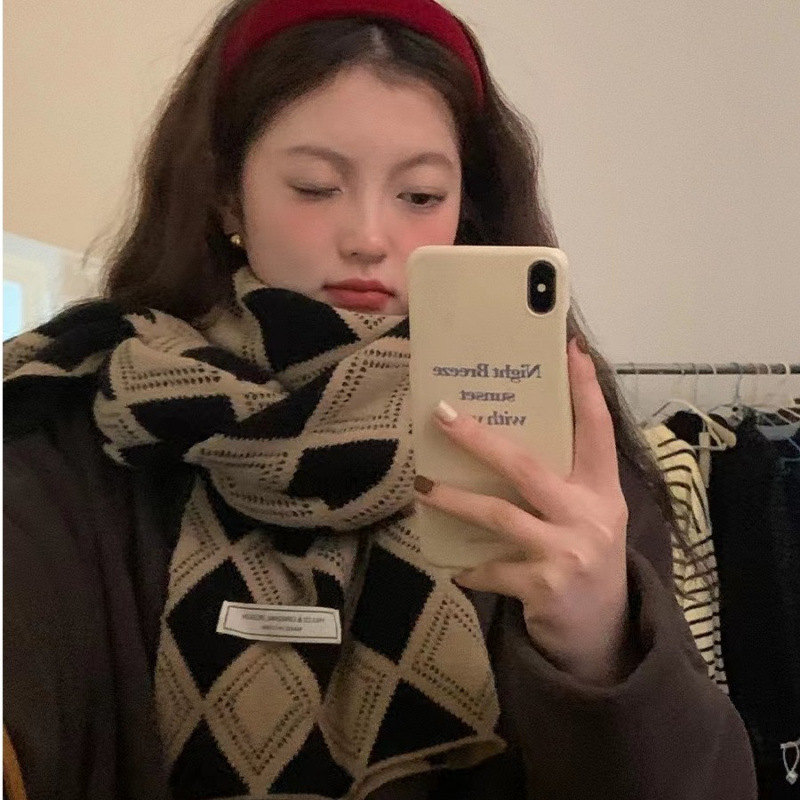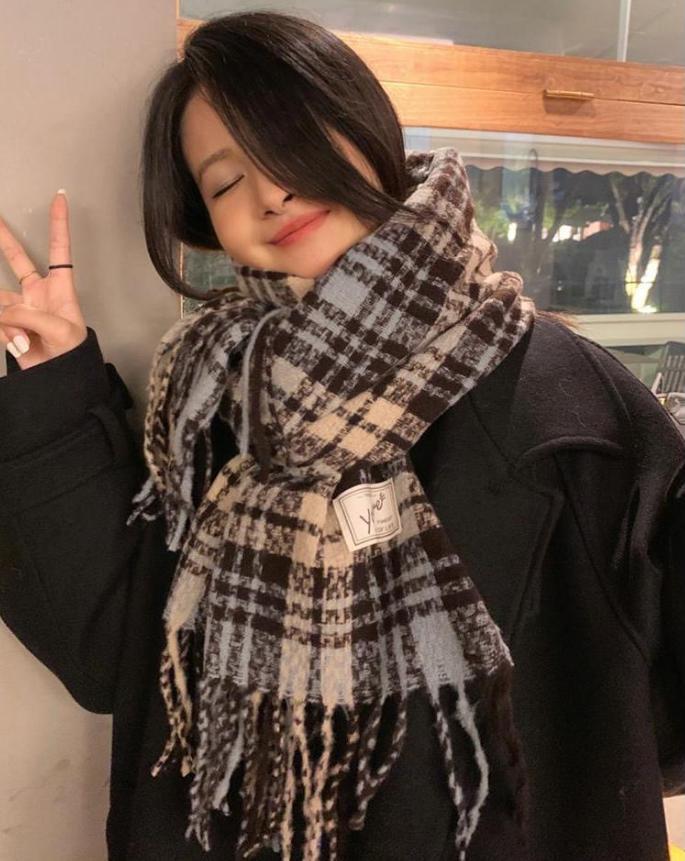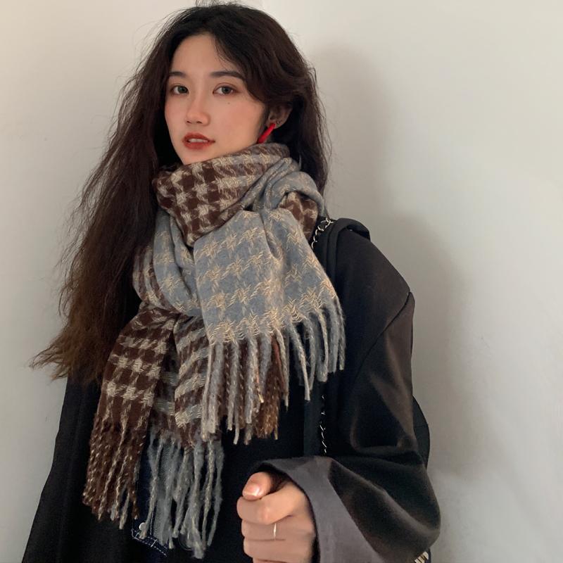 Maillard 따뜻한 학생 Yu Shuxin 패션 술 슈퍼 롱 양면 두꺼운 올 매치 하운드 투스 스카프스토어 가기