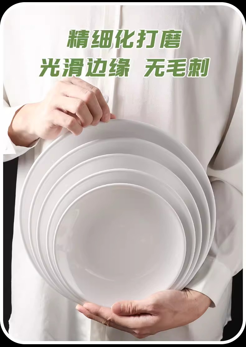 멜라민 플레이트 모방 도자기 플라스틱 라운드 요리 레스토랑 비즈니스 호텔 멀티 사이즈 화이트 디스크 뼈 접시