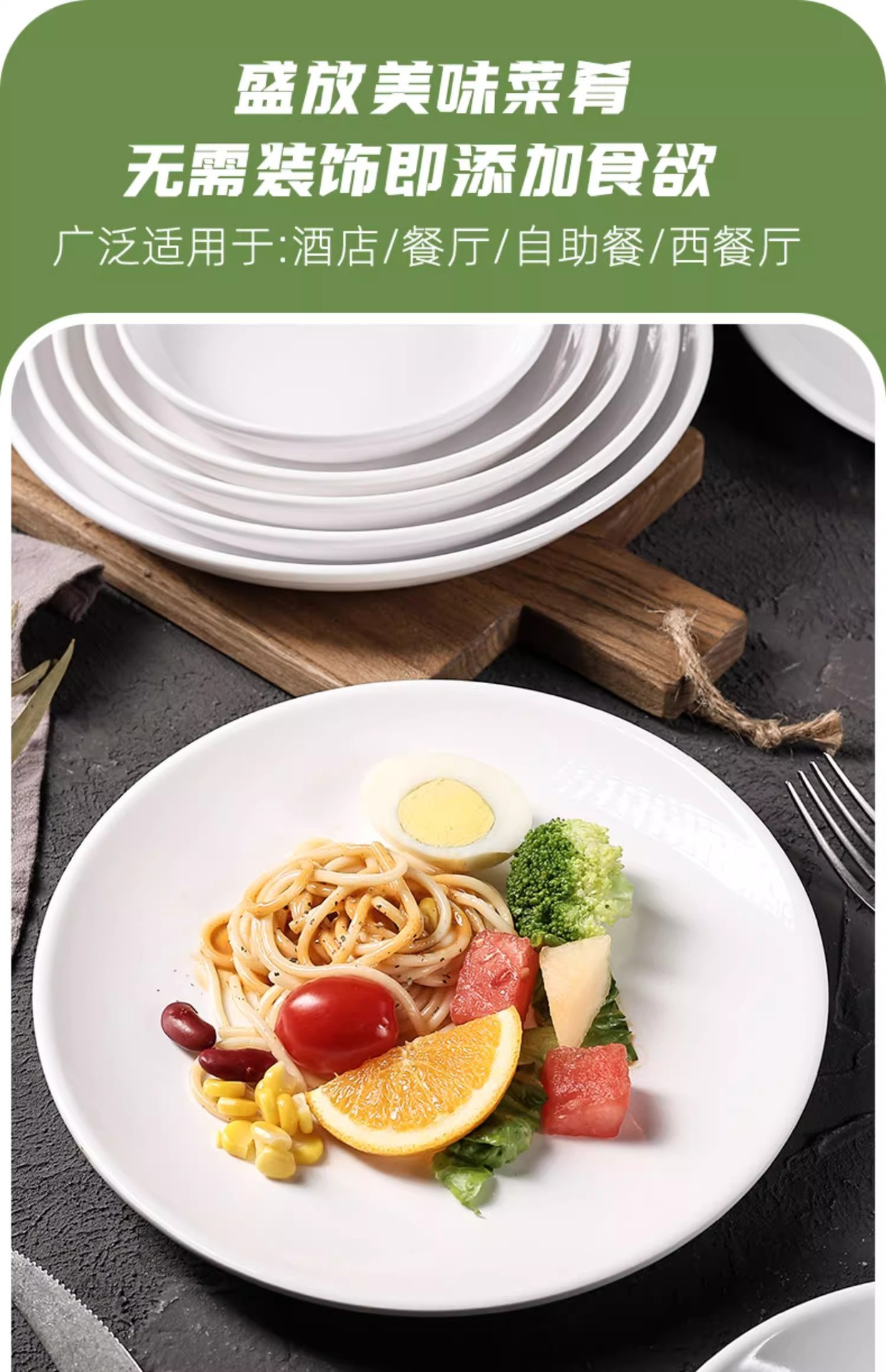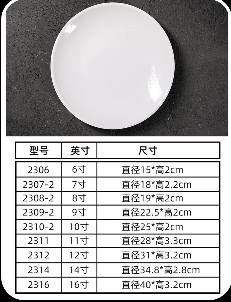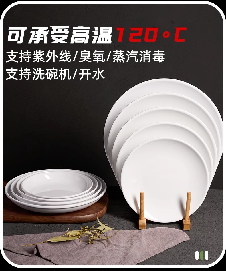멜라민 플레이트 모방 도자기 플라스틱 라운드 요리 레스토랑 비즈니스 호텔 멀티 사이즈 화이트 디스크 뼈 접시스토어 가기