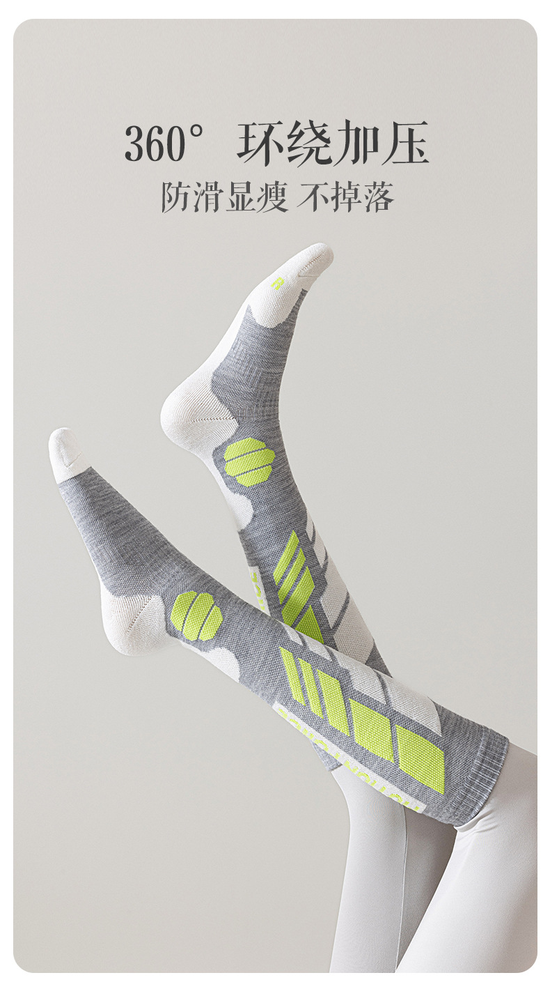 여성용 전문 스키 양말, 양모 두꺼운 야외 스포츠 사이클링 하이킹 등산 베니어 압축 긴 종아리 양말
