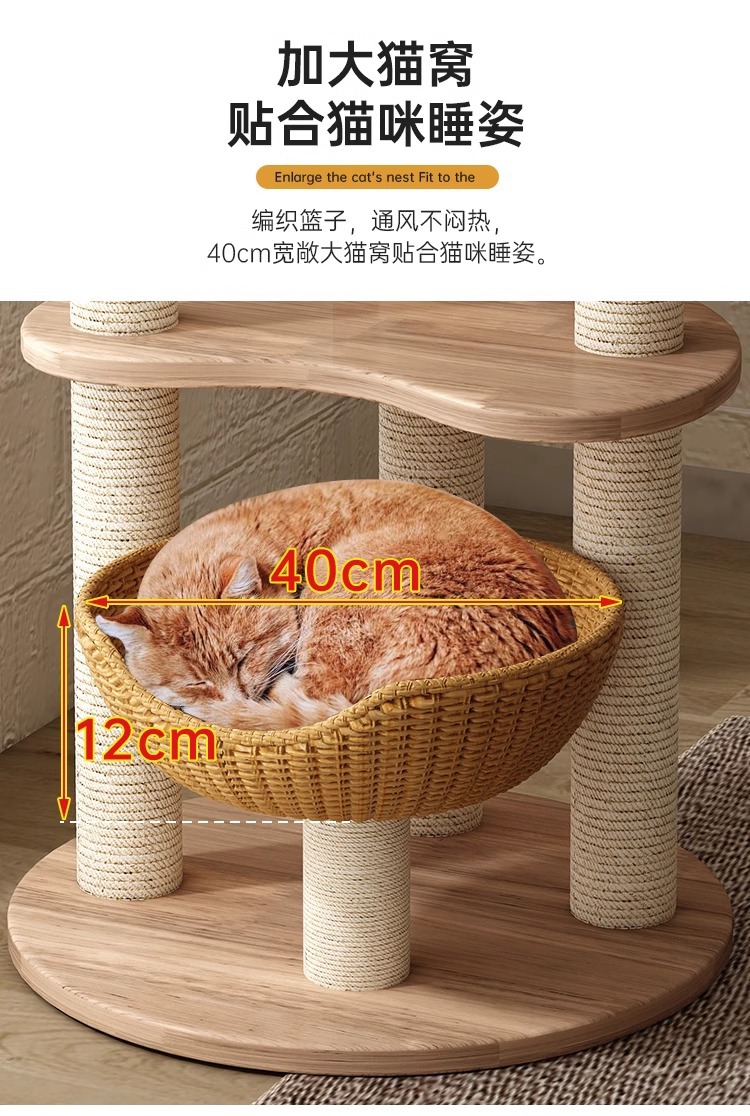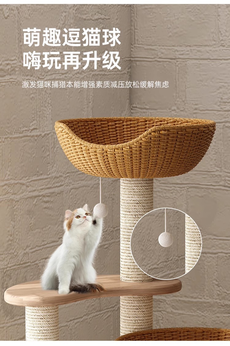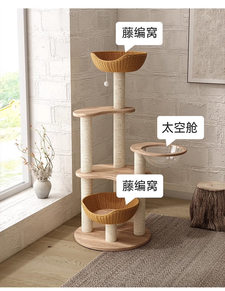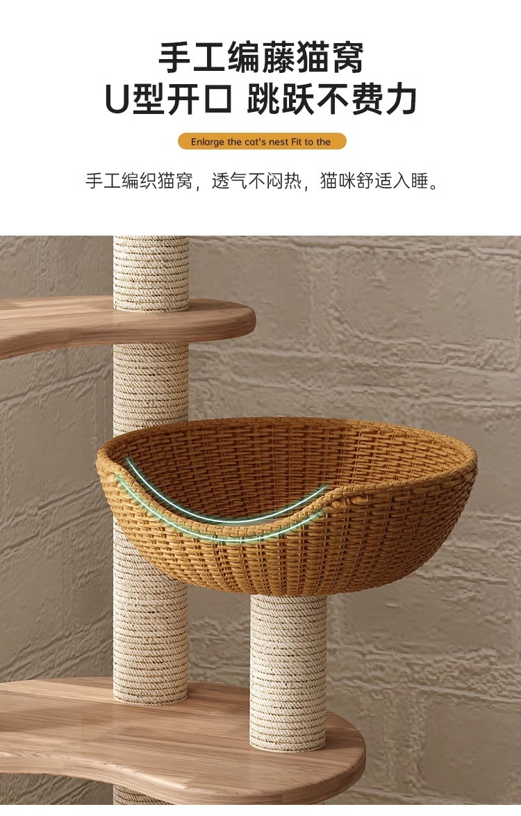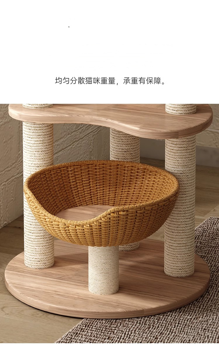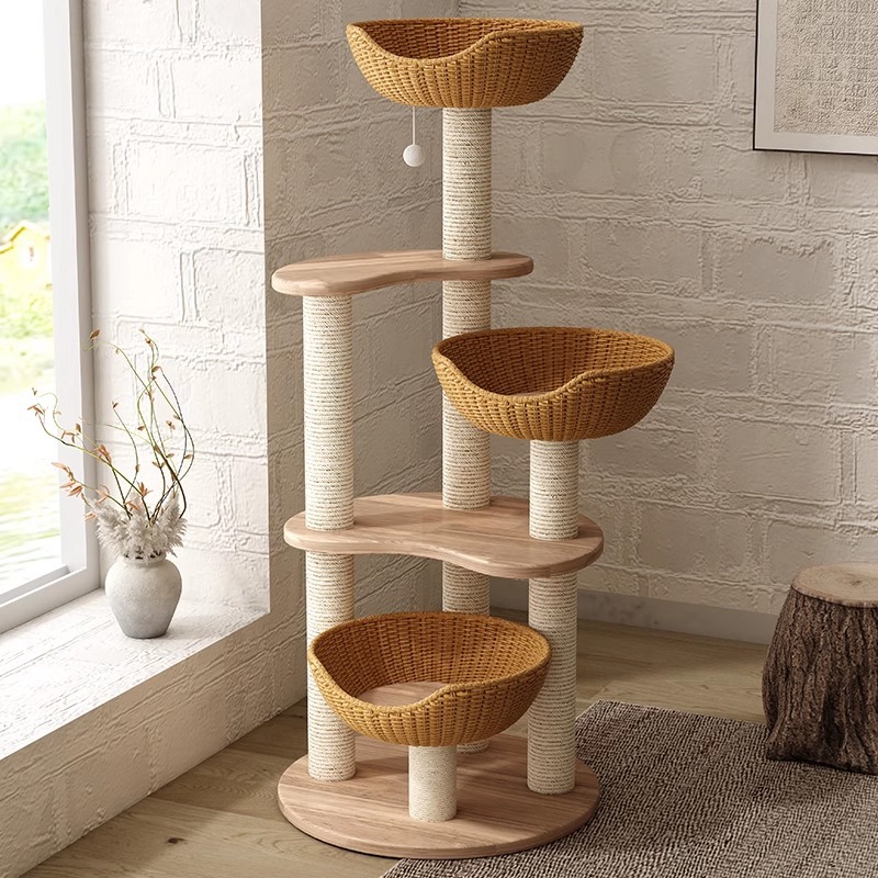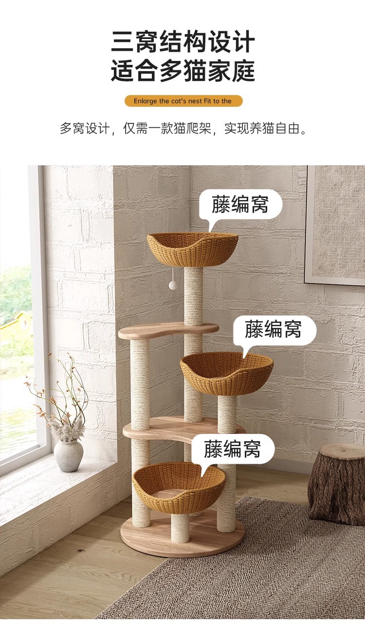 원목과 등나무로 만든 고양이 집, 고양이가 긁지 못하는 고양이 클라이밍 프레임, 고양이 나무 일체형, 소형 사자풀, 다묘가 사는 작은 집에도 공간 절약