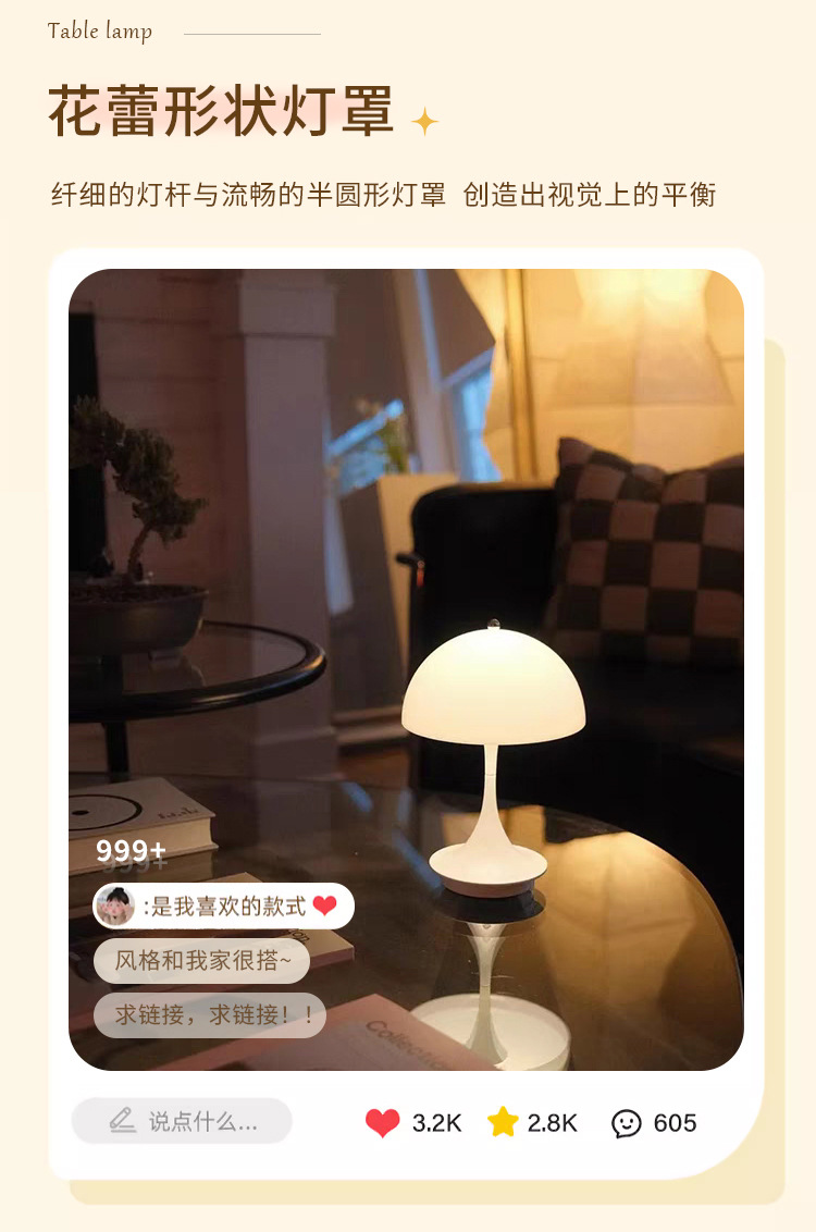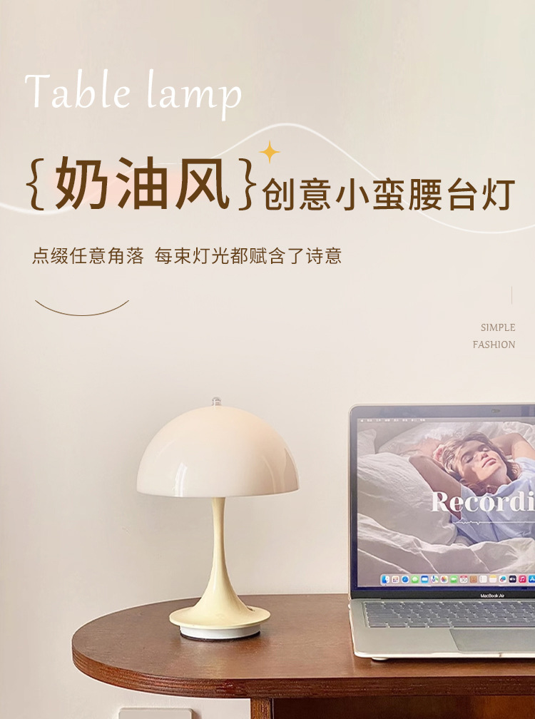 뜨거운 현대 간단한 버섯 램프 인 크림 스타일 침실 침실 분위기 램프 작은 남자 허리 창조적 인 버드 테이블 램프