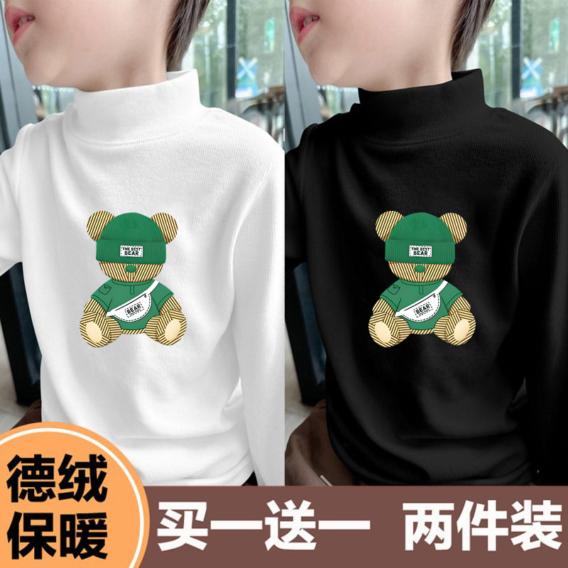 Y2442 # 소년 벨벳 탑 기모 따뜻한 가을/겨울 소년 조커 긴 소매 티셔츠 CUHK 어린이 티셔츠 타이드