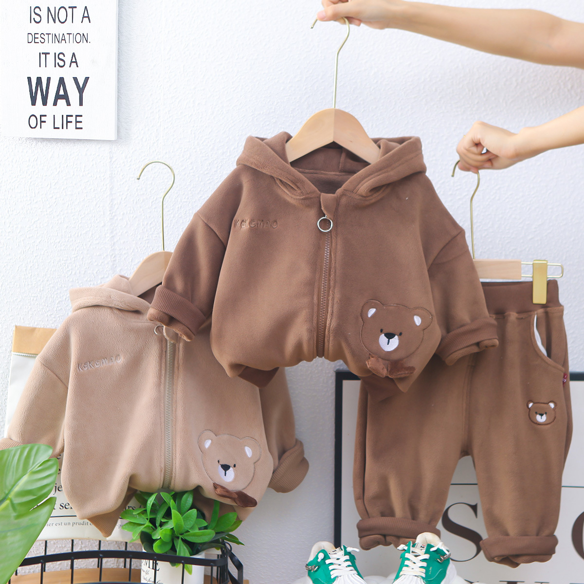 남자들의 가을과 겨울 세트 2024 새로운 서양식 남성 아기 겨울 조끼 기모 도매를 대신하여 두꺼운 3 피스 세트스토어 가기