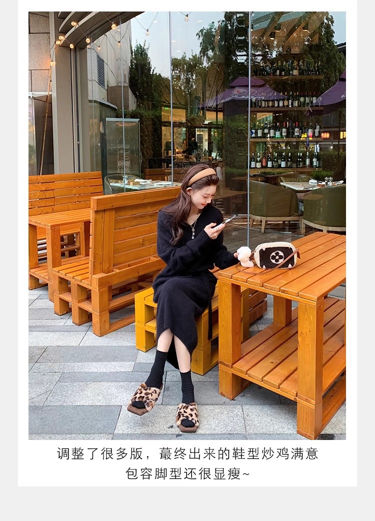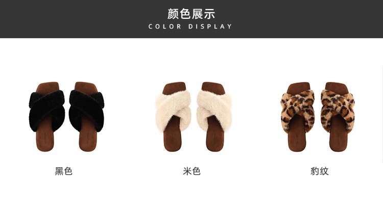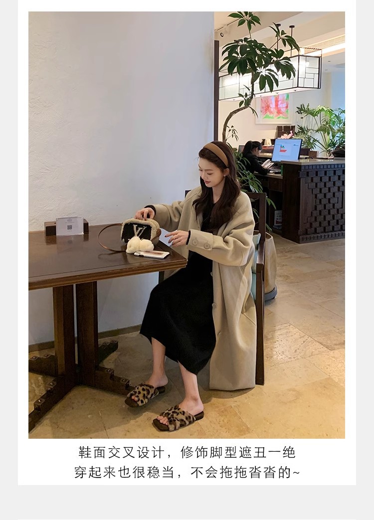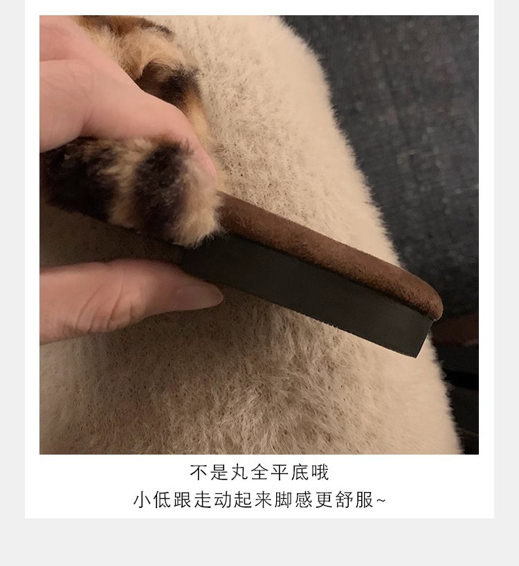 포도 엄마 가을과 겨울 새로운 우아한 스퀘어 헤드 크로스 벨트 게으른 올 매치 레오파드 무늬 플랫 슈즈 여성용 코튼 슬리퍼