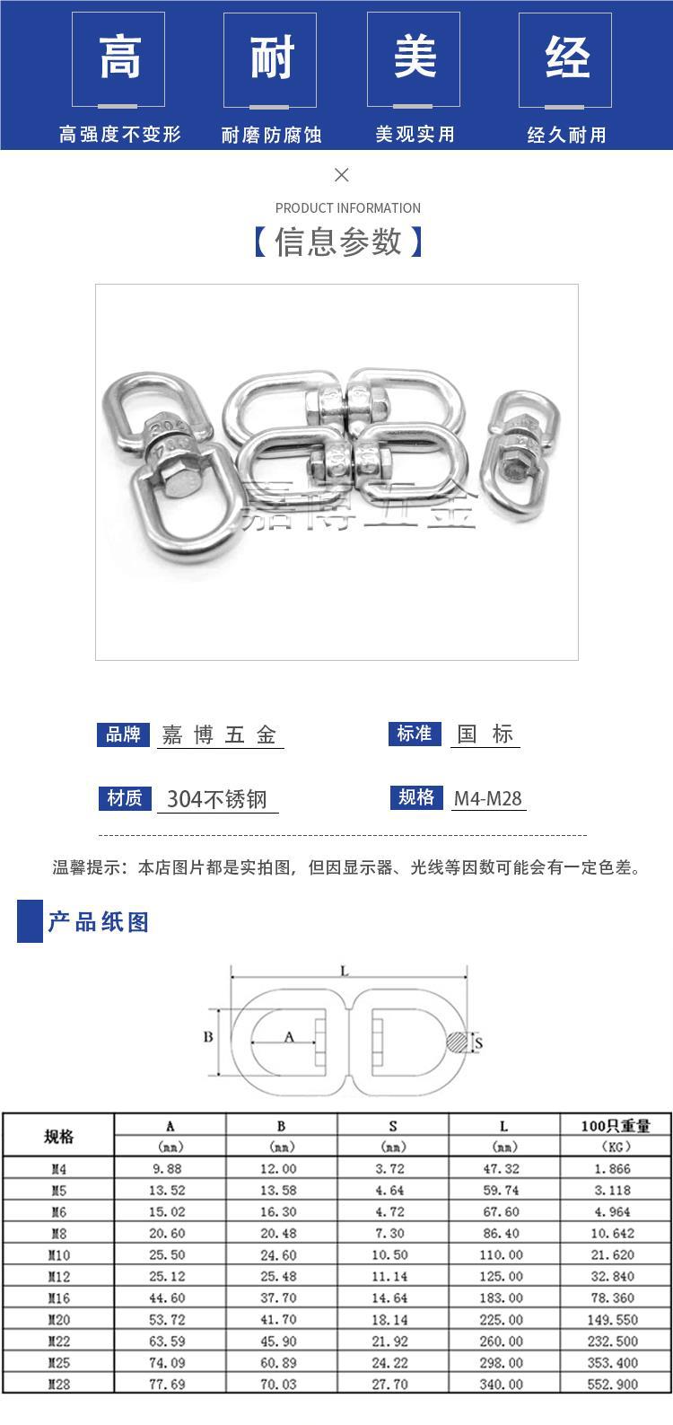 304 스테인레스 스틸 회전 링 8 자형 회전 링 연결 링 체인 버클 개 체인 유니버설 링 M4M5M6M8M10