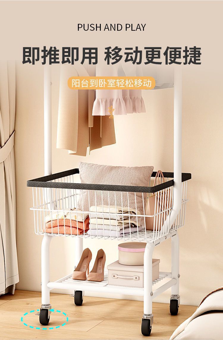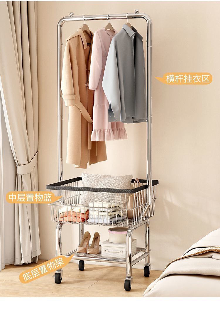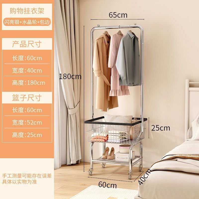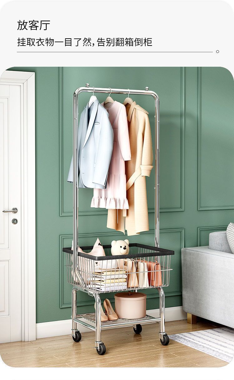 북유럽 스타일 바닥 수직 코트 랙 침실 간단한 의류 매달린 랙 보관 바구니 더러운 옷 바구니 모바일 의류 걸이 랙스토어 가기
