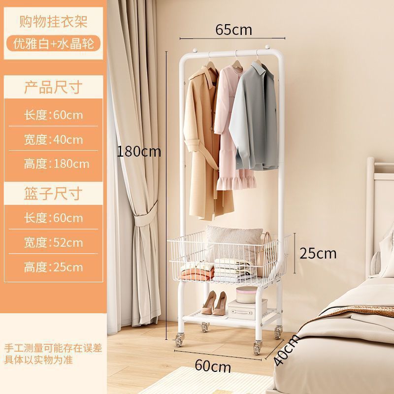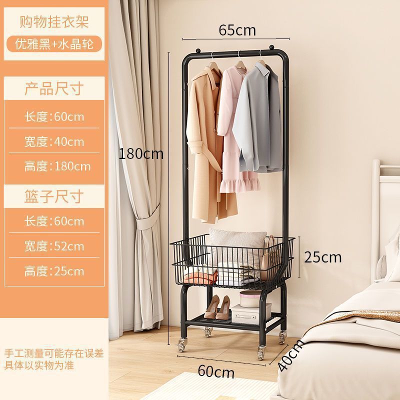 북유럽 스타일 바닥 수직 코트 랙 침실 간단한 의류 매달린 랙 보관 바구니 더러운 옷 바구니 모바일 의류 걸이 랙