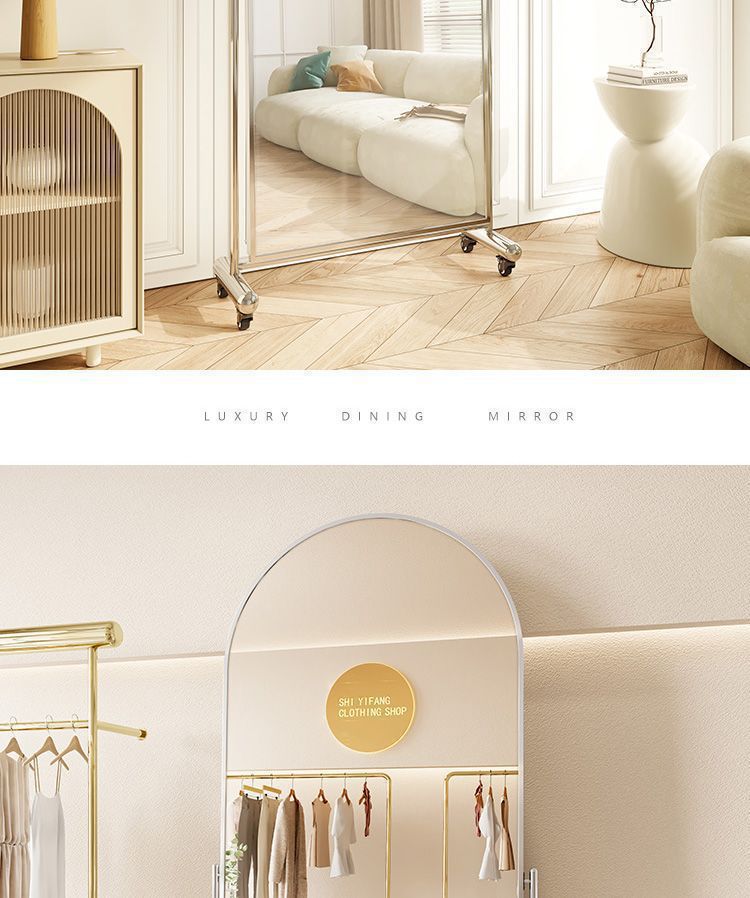 스테인레스 스틸 전체 길이 거울 전체 길이 거울 바닥 거울 홈 의류 상점 거울 움직일 수있는 피팅 거울 슬리밍 아름다움