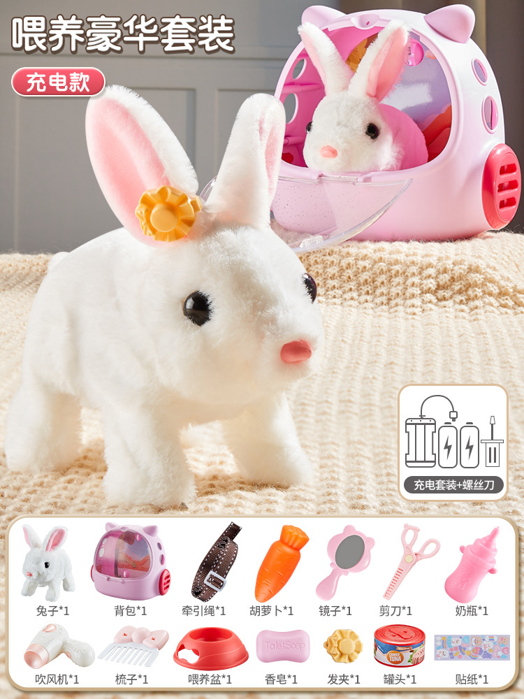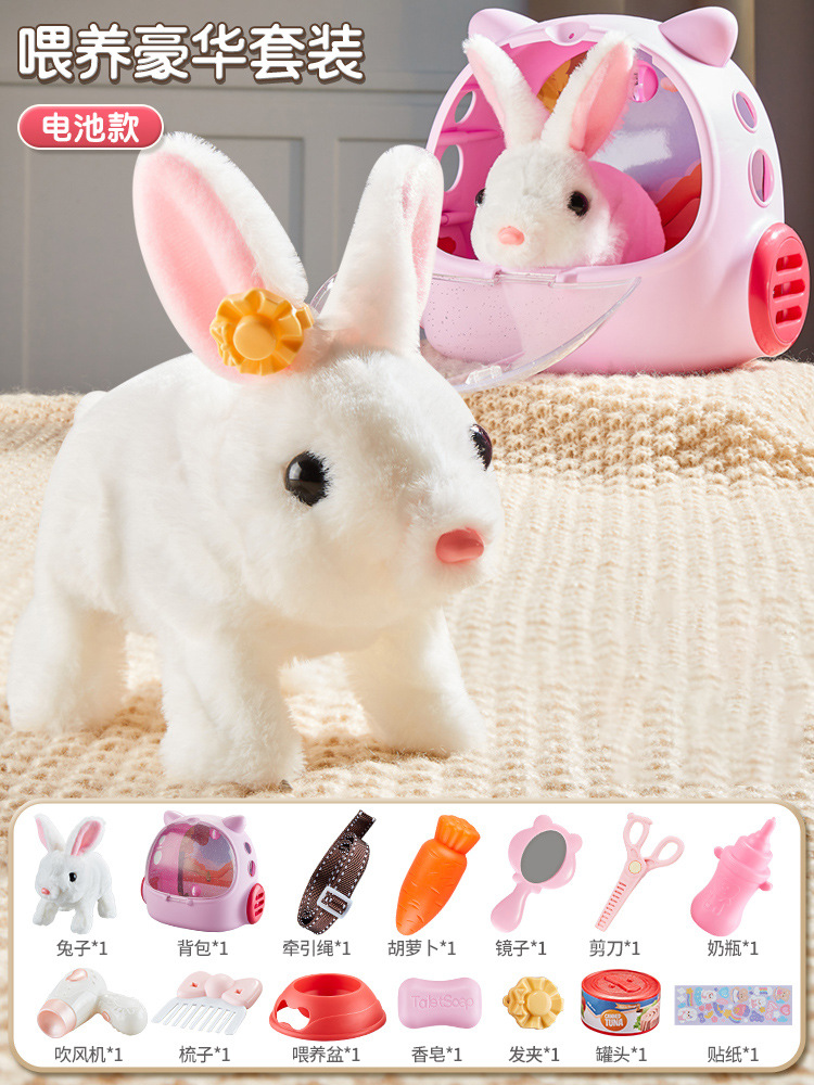 • 럭셔리한 풀세트 선택 - 작은 흰토끼 [애완동물 가방 + 먹이통 + 드레싱 세트] - 일반 배터리 버전