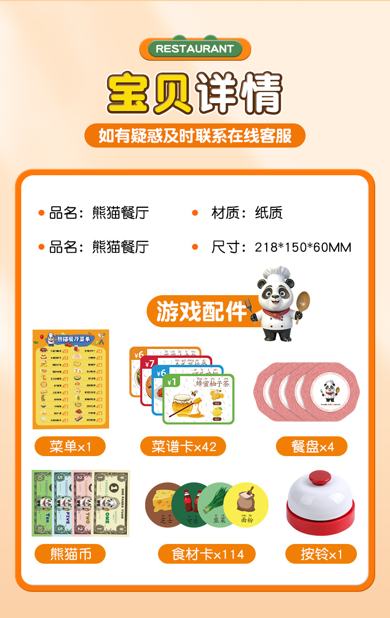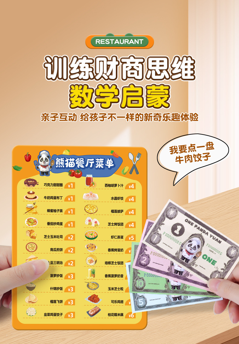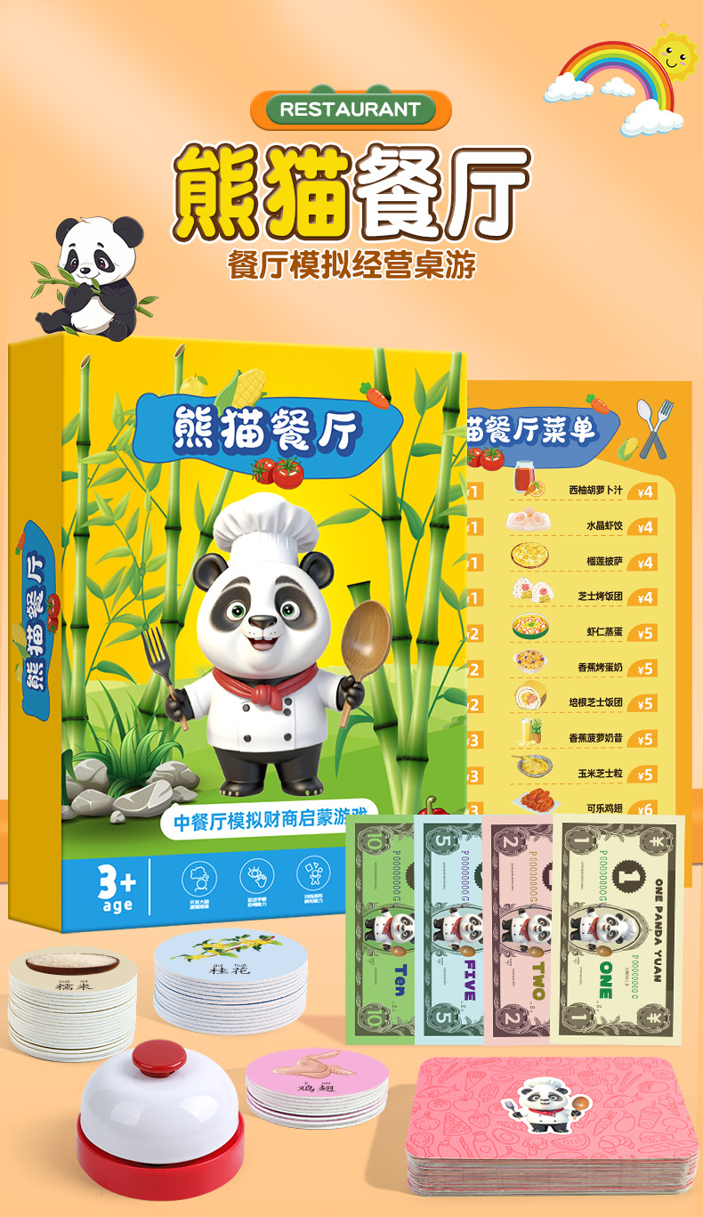 팬더 레스토랑 보드 게임 부모와 어린이를위한 시뮬레이션 관리 3-6 세 수학 사고 계몽주의 훈련 어린이 교육 게임