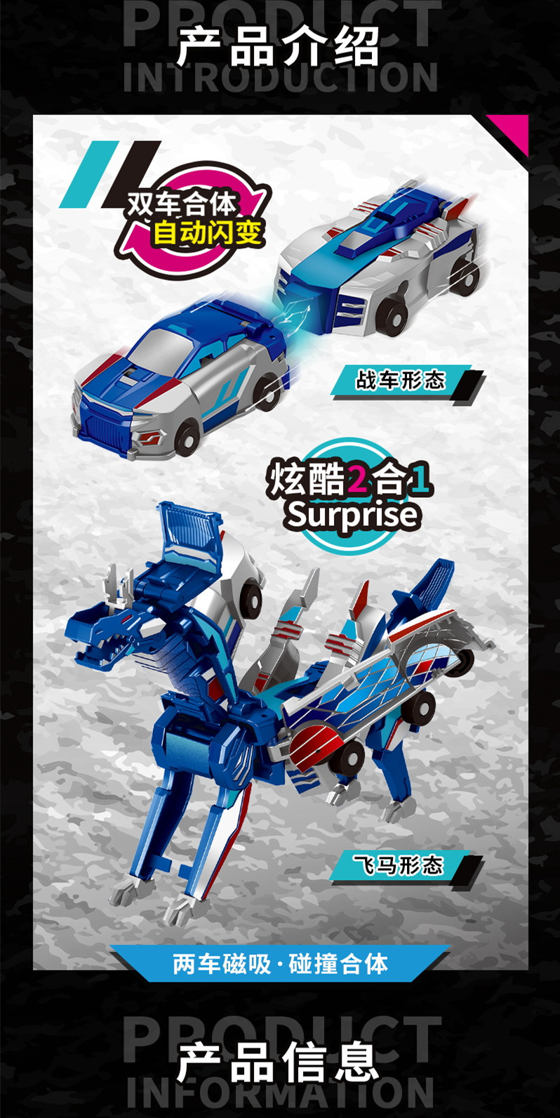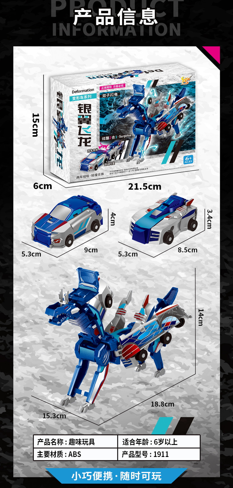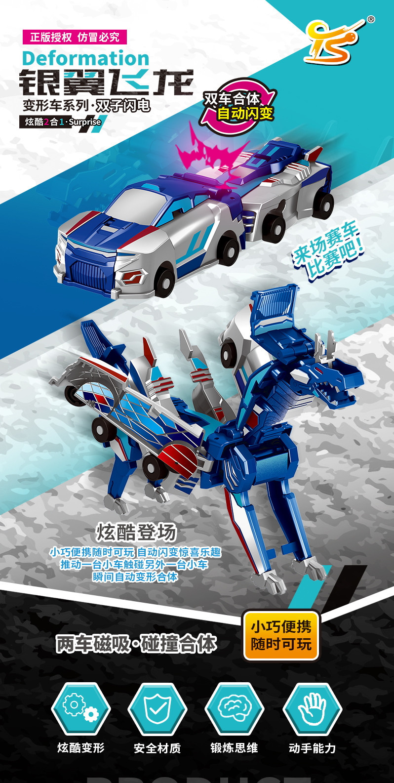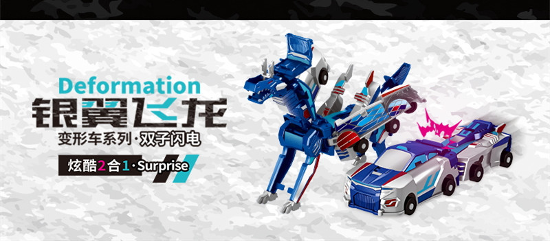 정품 공인 국경 간 실버 윙 드래곤 2 차 충돌 자기 흡수 자동 변형 장난감 자동차 소년과 소녀 장난감스토어 가기