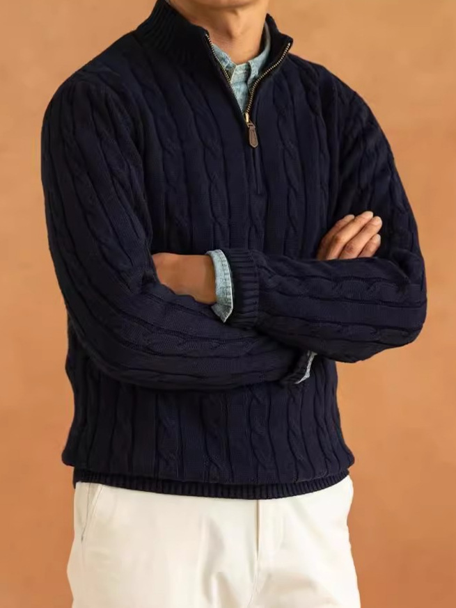 가을과 겨울 반 터틀넥 지퍼 스웨터 남자 느슨한 풀오버 대마 패턴 니트 스웨터 재킷 트렌디 올 매치 캐주얼 탑