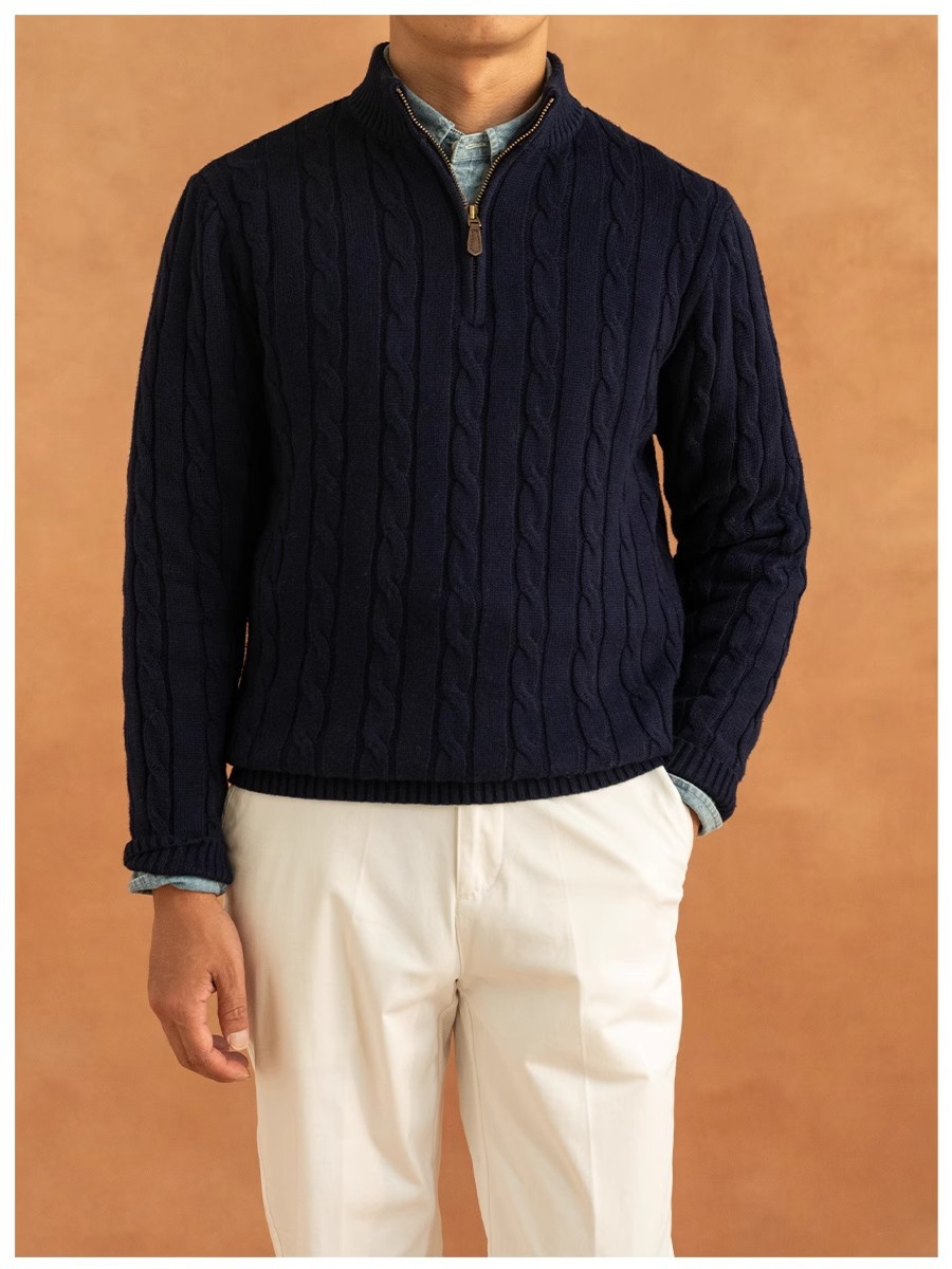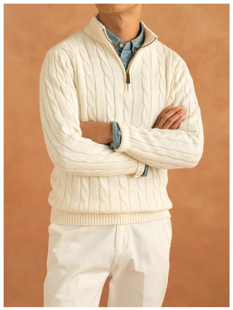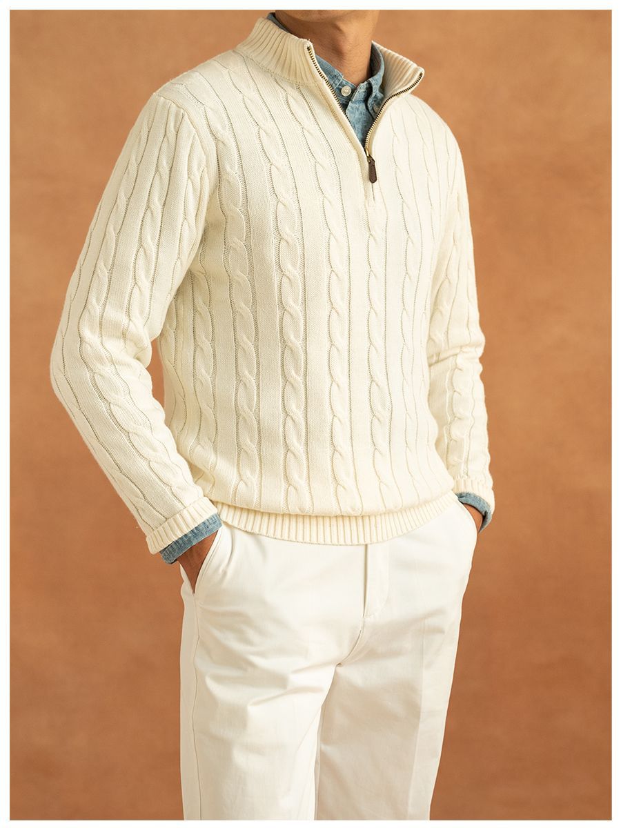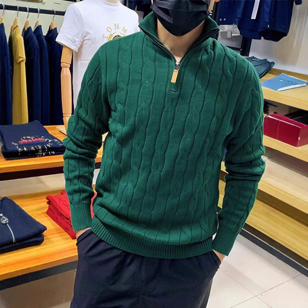 가을과 겨울 반 터틀넥 지퍼 스웨터 남자 느슨한 풀오버 대마 패턴 니트 스웨터 재킷 트렌디 올 매치 캐주얼 탑스토어 가기