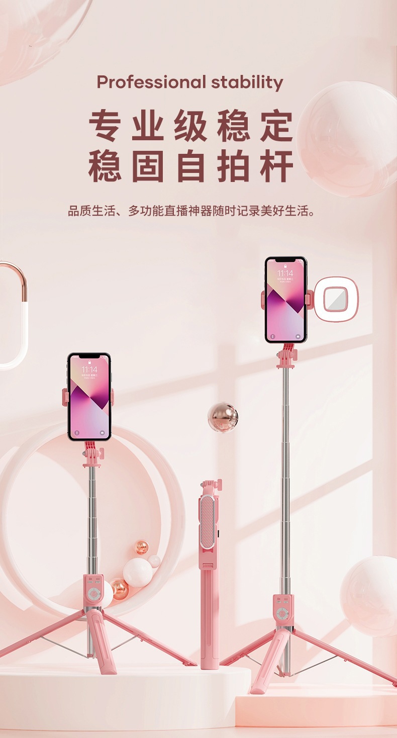 • P86TC 싱글 필 라이트 모델 핑크 [셀카봉 1.3m 개 + 충전식 다기능 블루투스 리모컨 + 대형 미러 필 라이트 1 개]