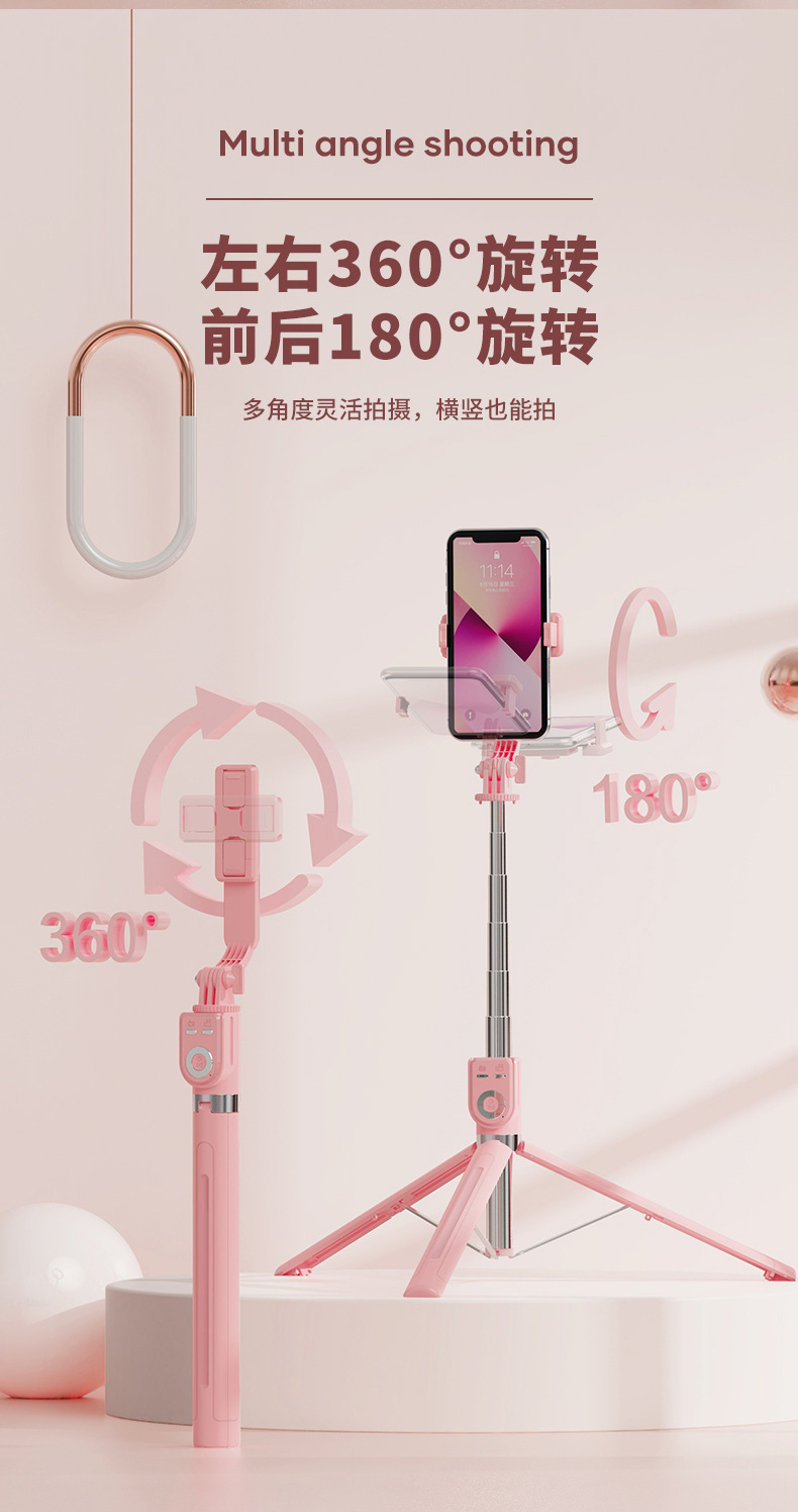 • P87TC 싱글 램프 모델 핑크 [셀카봉 1.7m 개 + 충전식 다기능 블루투스 리모컨 + 대형 미러 필 라이트 1 개]