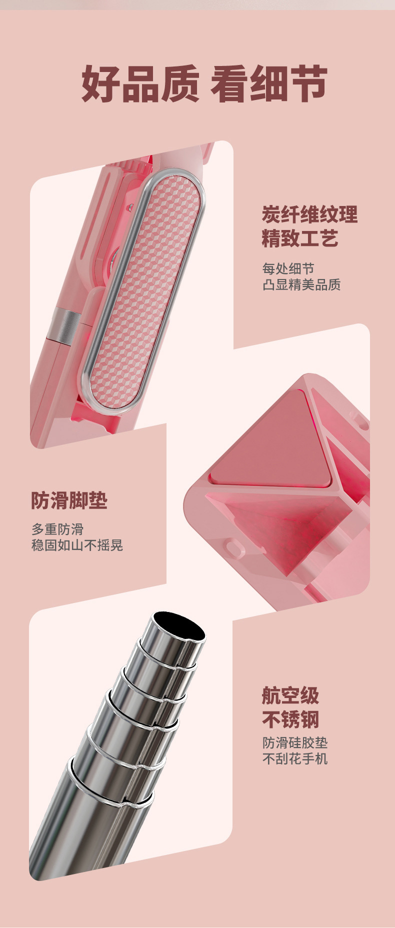 • P87TC 베이직 모델 핑크 [ 1.7m 셀카봉 + 충전 다기능 블루투스 리모콘]