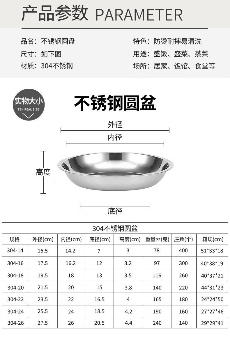 304 스테인레스 스틸 플레이트 가정용 디스크 플랫 플레이트 두꺼운 접시 유치원 매점 조미료 접시 작은 둥근 접시