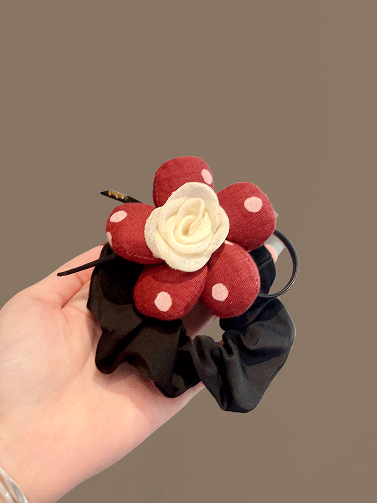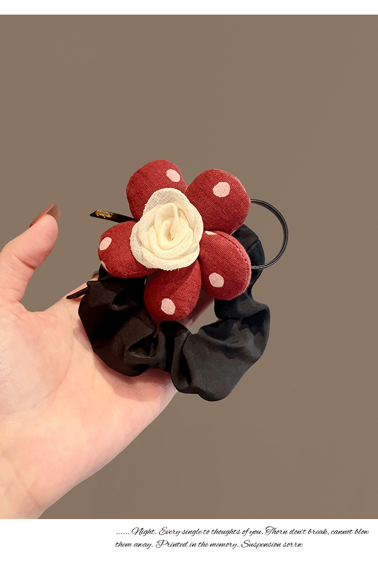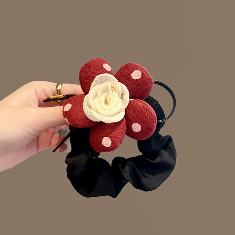 Ins 간단한 3 차원 꽃 낮은 포니 테일 매일 올 매치 헤어 링 하이 엔드 인터넷 스타일 레드 헤어 액세서리 여성의 우아한