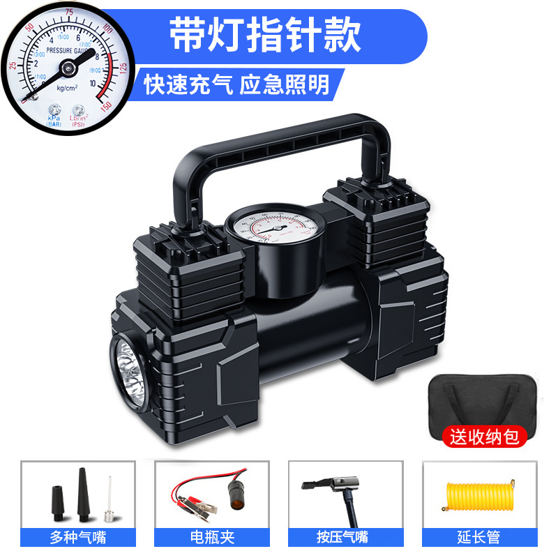 • 고압 이중 펌프 기계식 모델 [빠른 공기 보충]★비상 조명★타이어 공기압 감지] 에어 노즐 + 연장 튜브