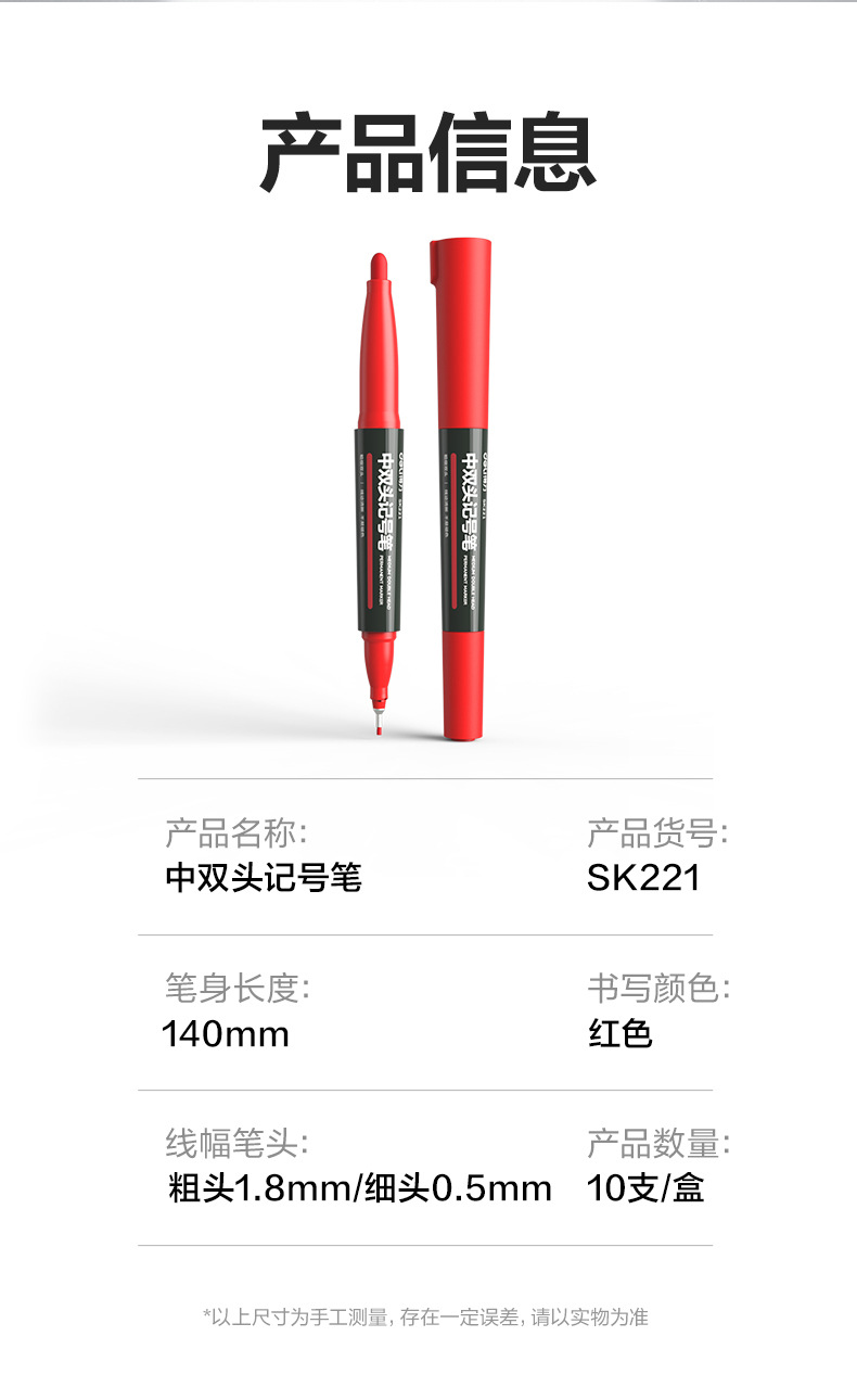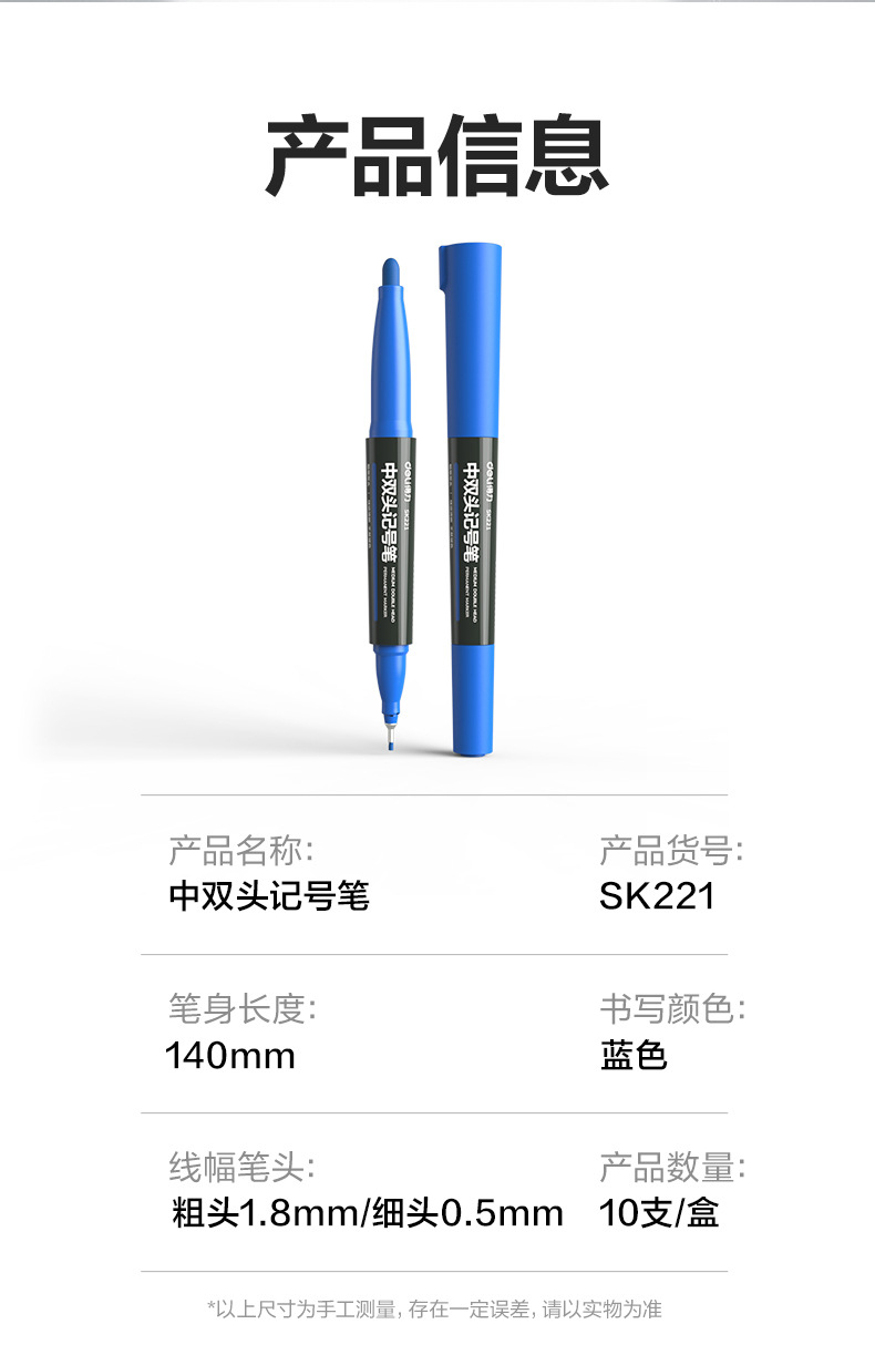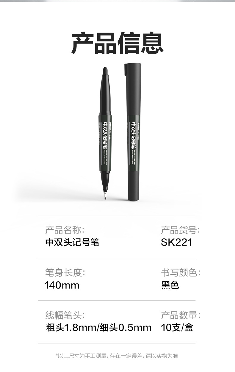 델리 양두 마커 중간 두께 SK221 방수 빠른 건조 마커 보편적 인 퇴색하기 쉽지 않은 플러핑