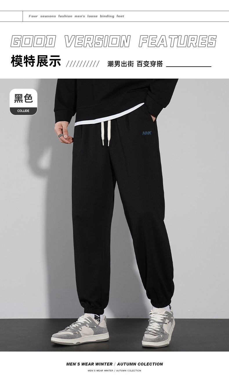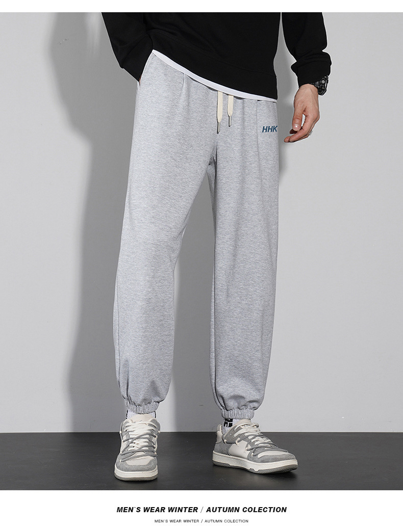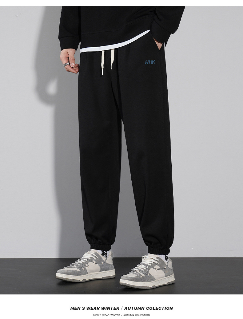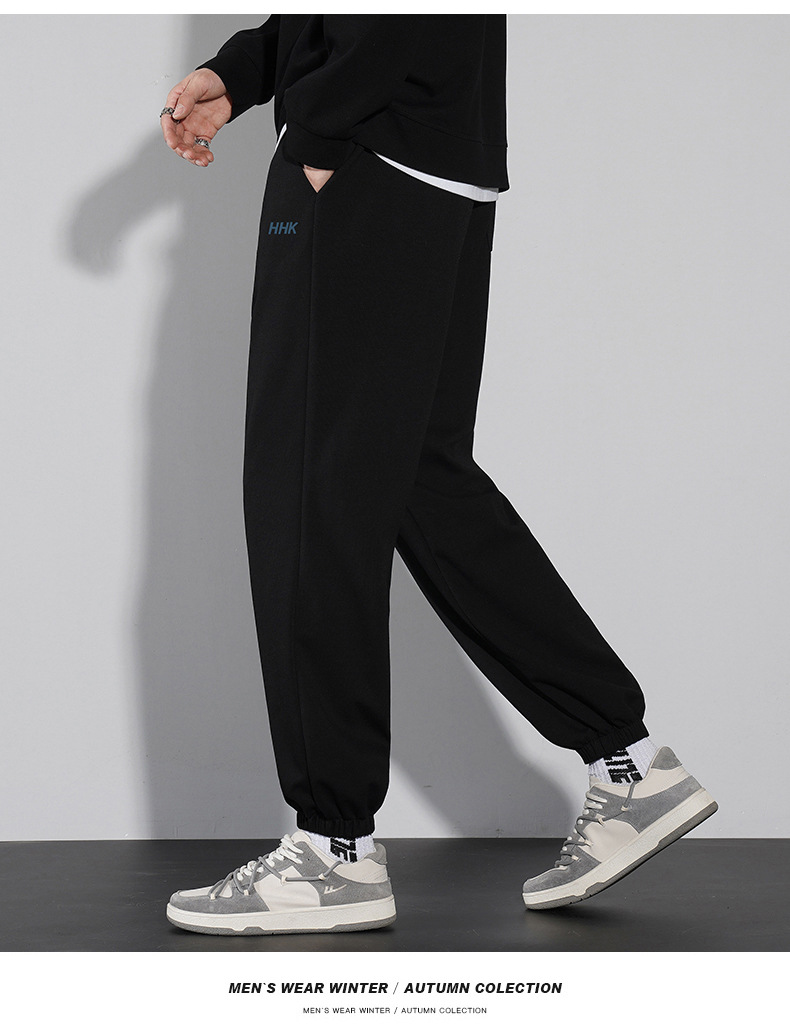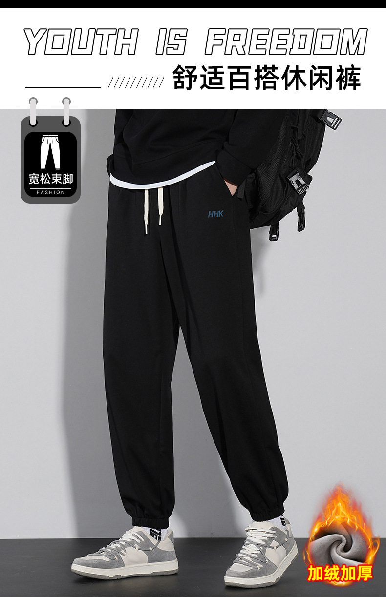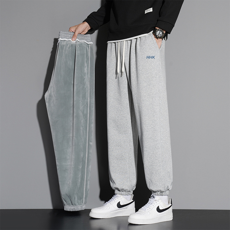겨울 남자 캐주얼 스포츠 바지 홍콩 스타일 느슨한 다리 발가락 바지 남자 기모 두꺼운 다리 바지 유행 남자스토어 가기