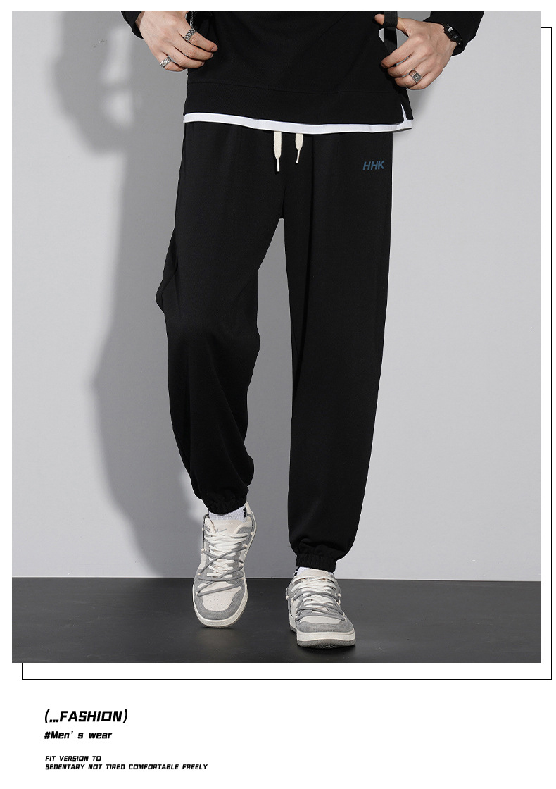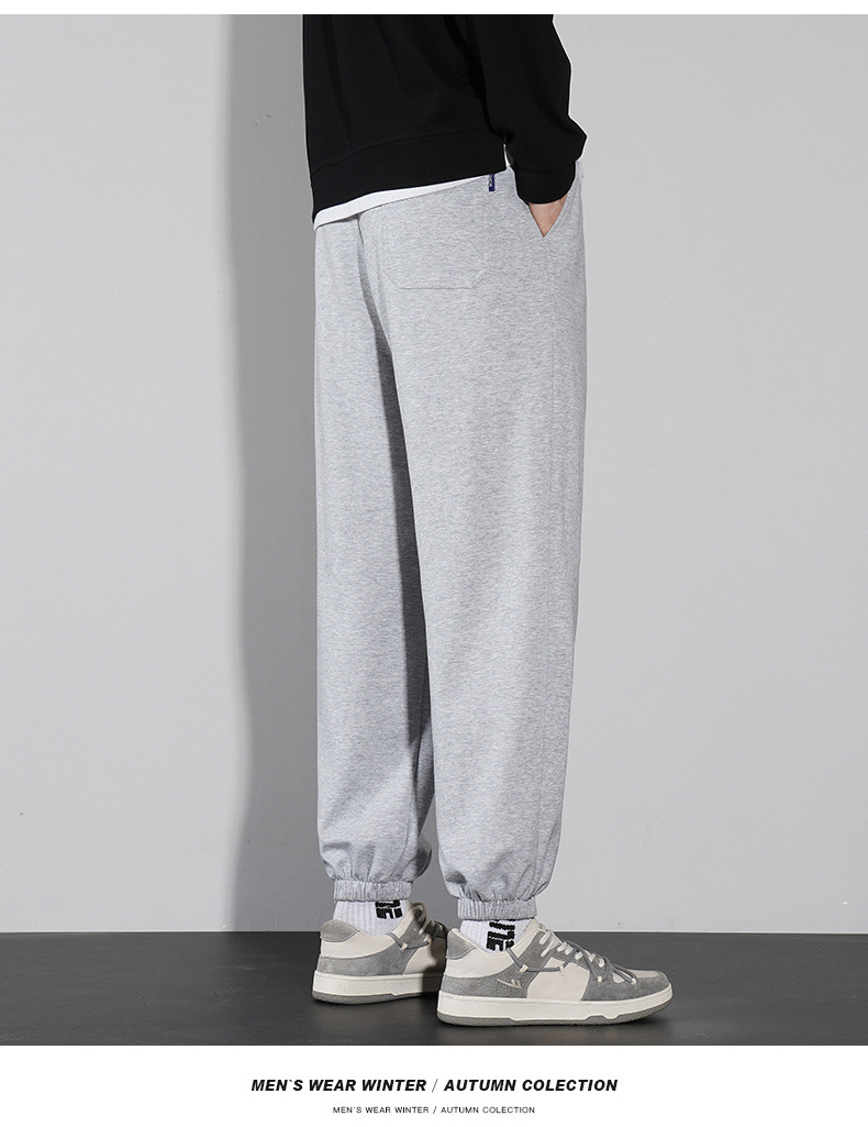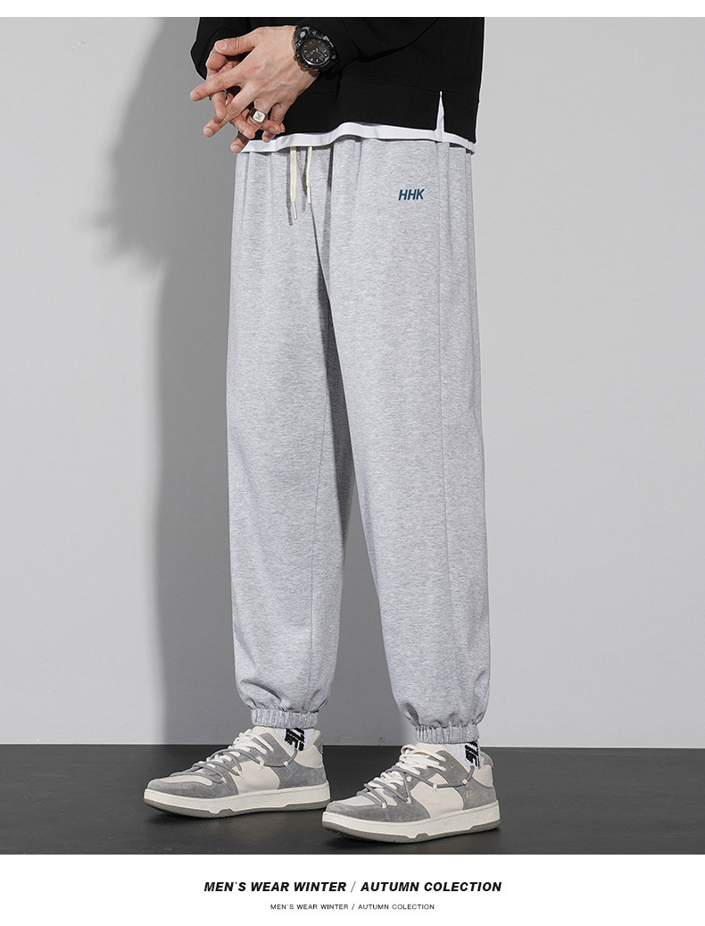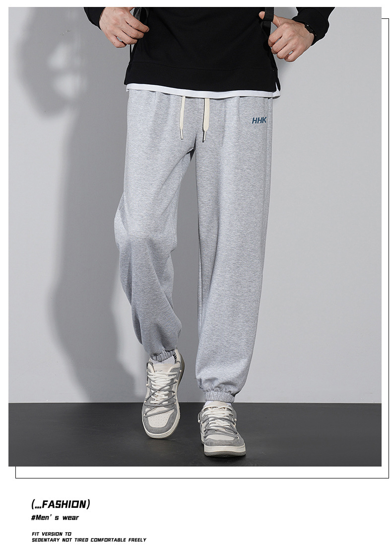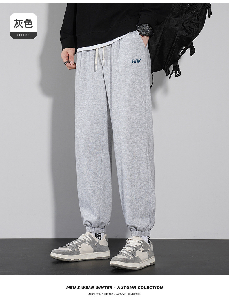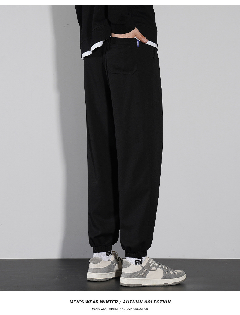 겨울 남자 캐주얼 스포츠 바지 홍콩 스타일 느슨한 다리 발가락 바지 남자 기모 두꺼운 다리 바지 유행 남자스토어 가기