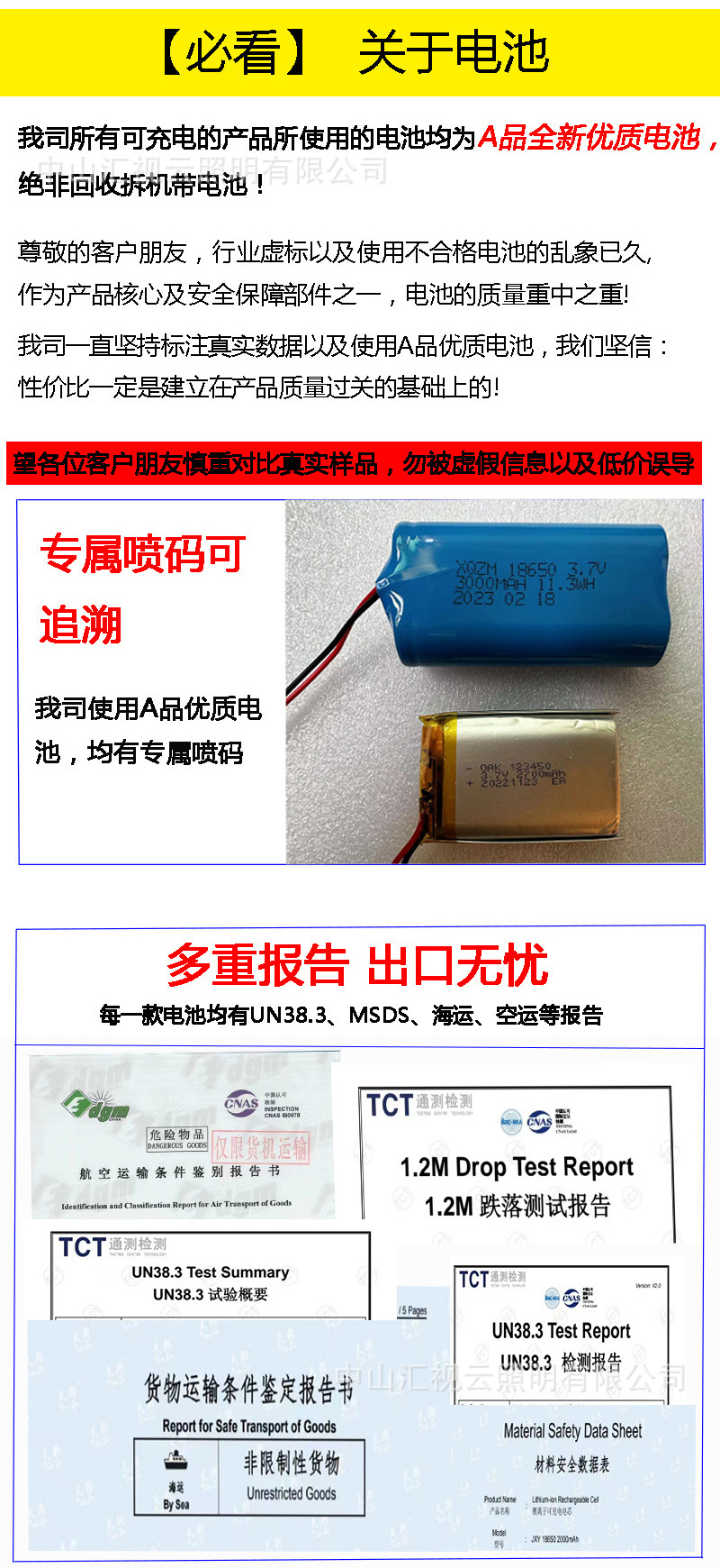 检测报告:UN38.3(电池)/MSDS(电池)
