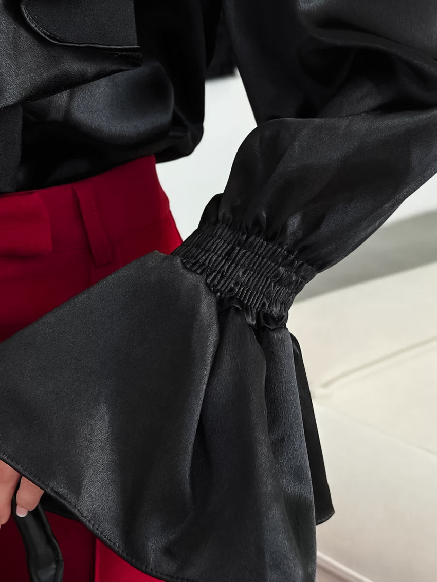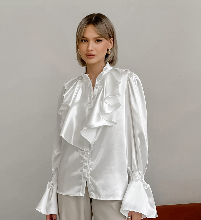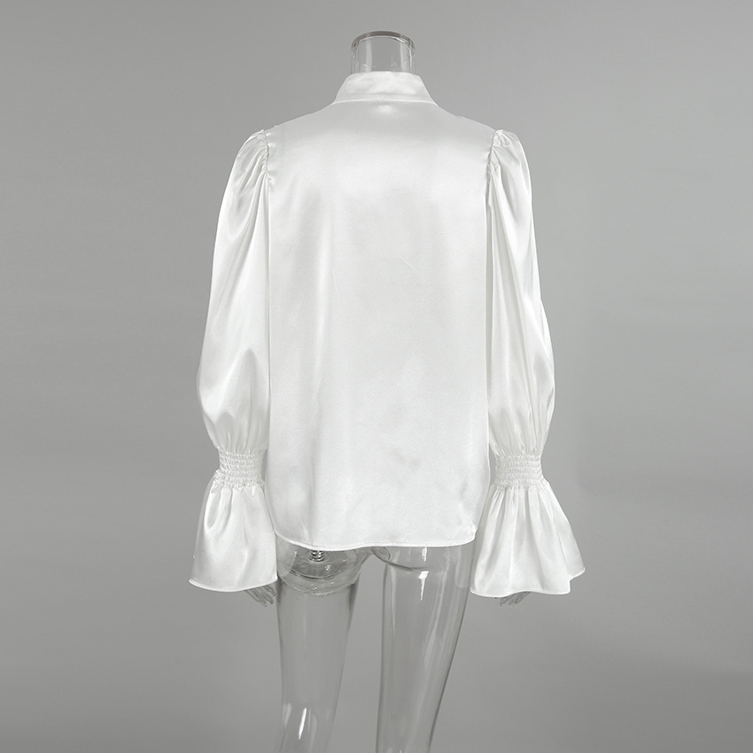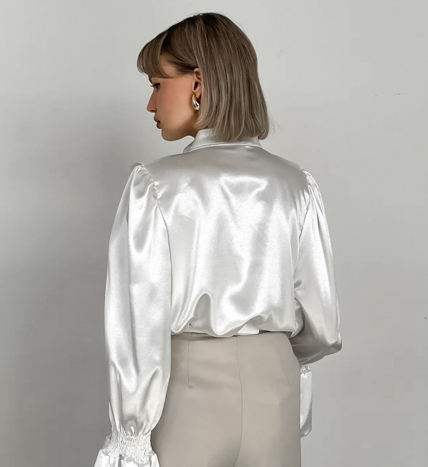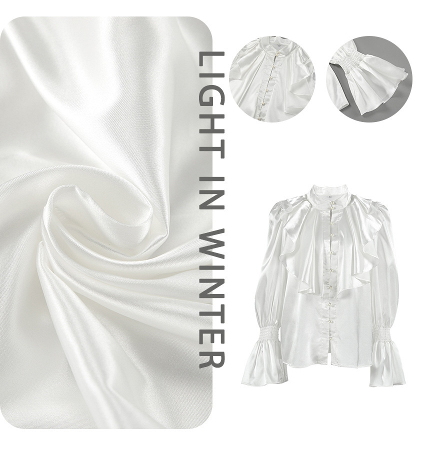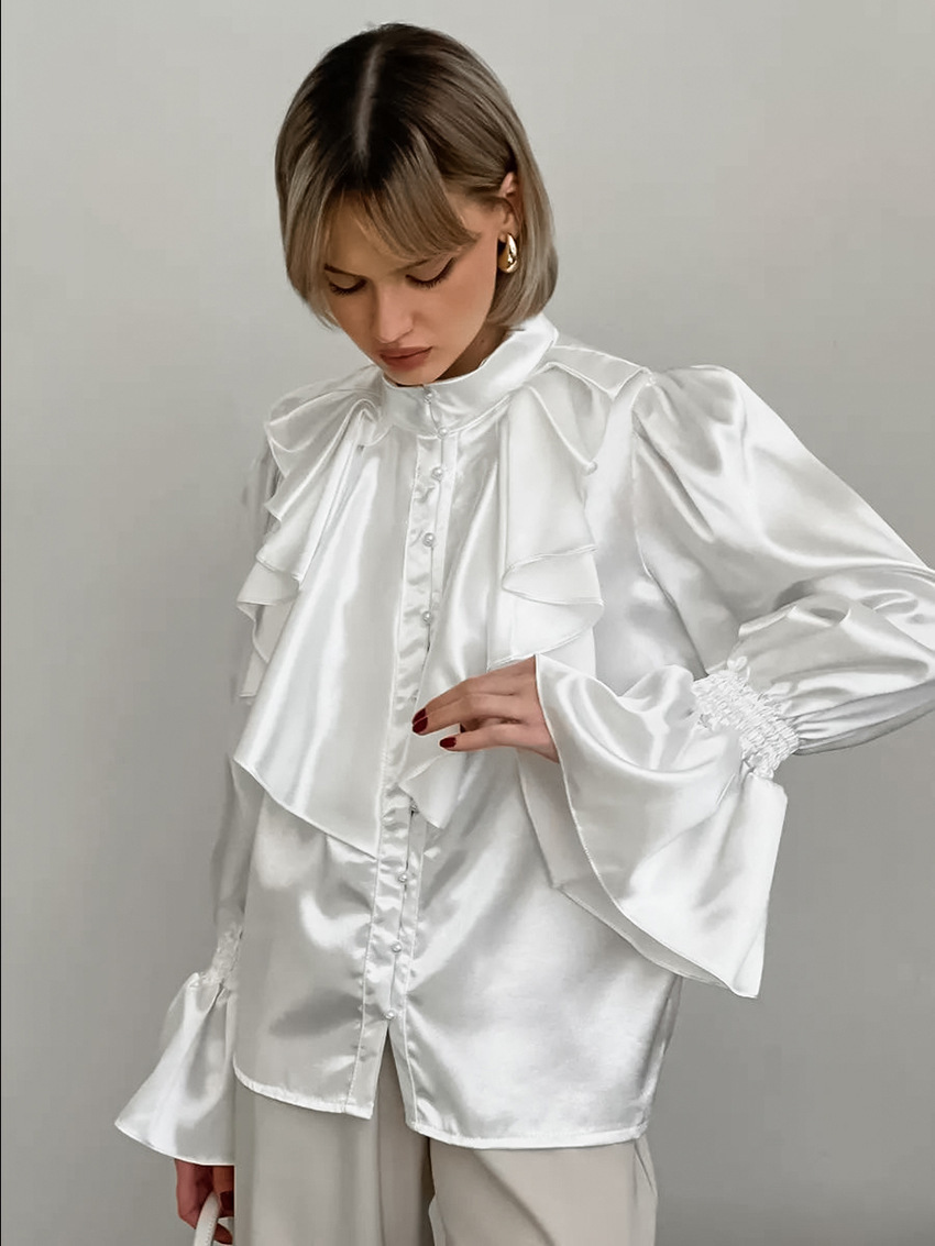 궁전 스타일 주름진 작은 스탠드 칼라 싱글 브레스트 웨스턴 스타일 카디건 가을 광택 호른 소매 느슨한 여성용 탑
