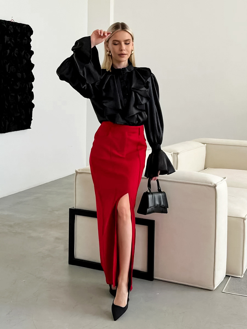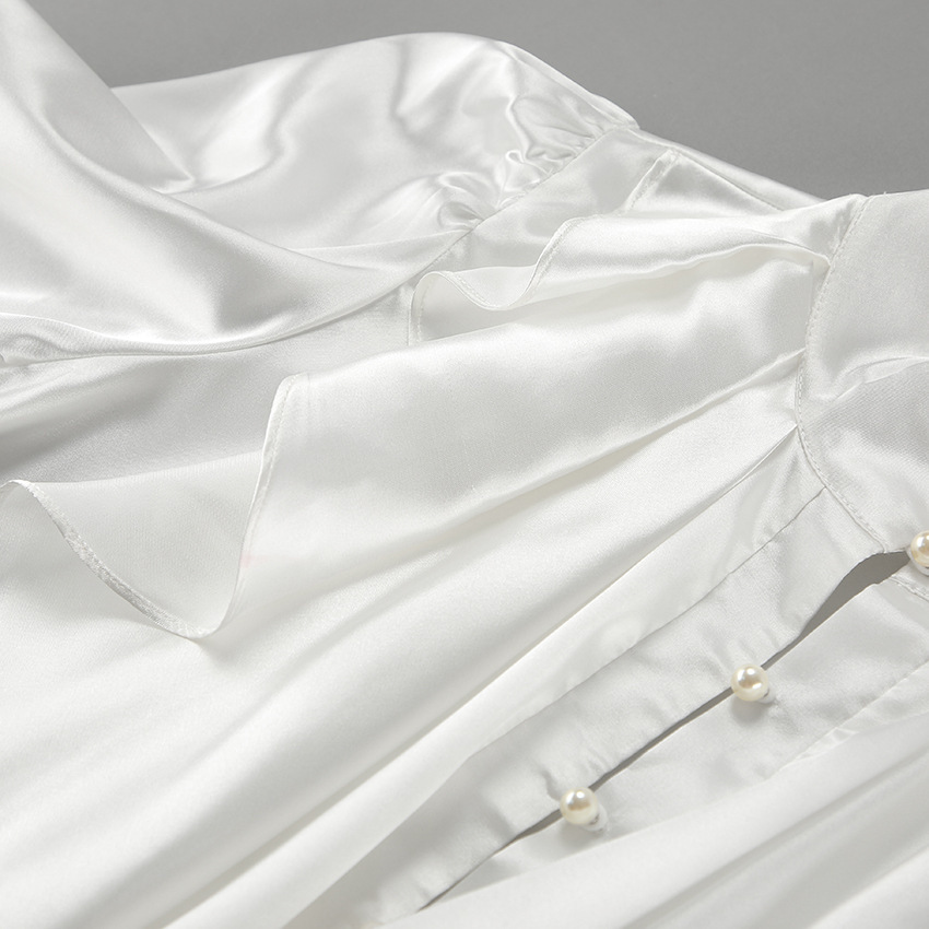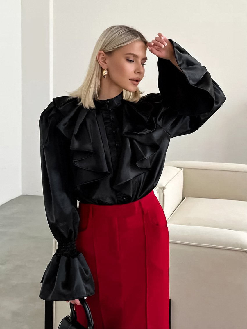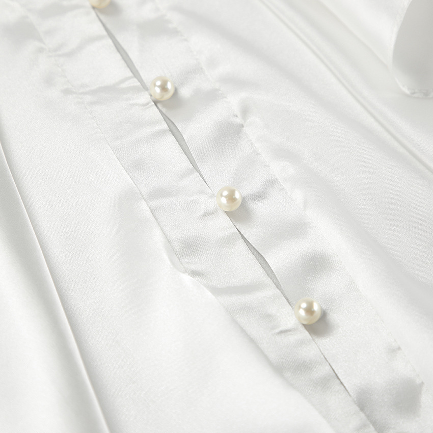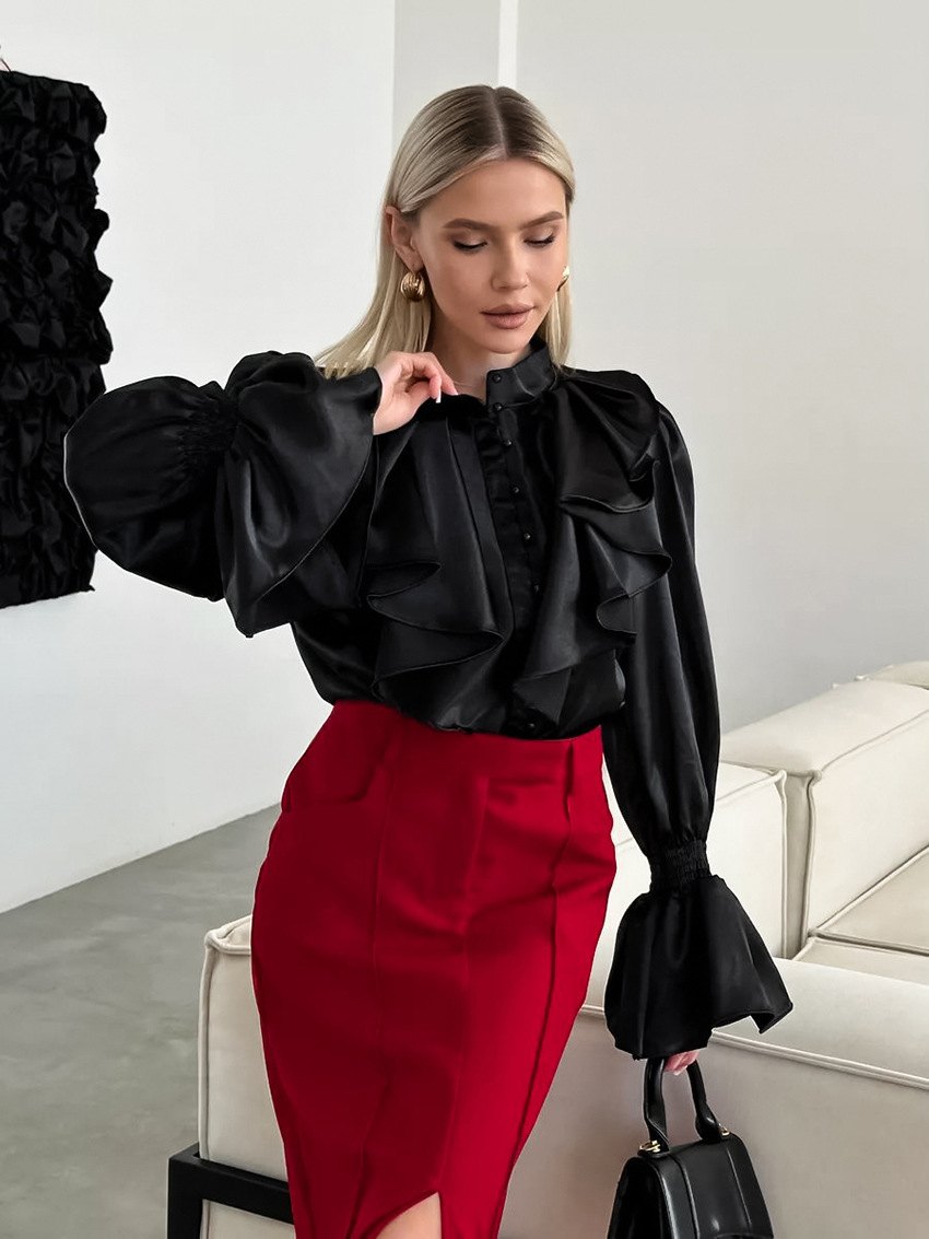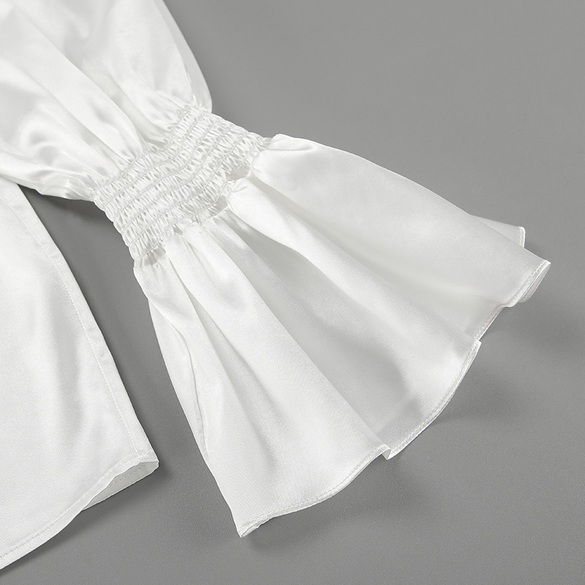 궁전 스타일 주름진 작은 스탠드 칼라 싱글 브레스트 웨스턴 스타일 카디건 가을 광택 호른 소매 느슨한 여성용 탑