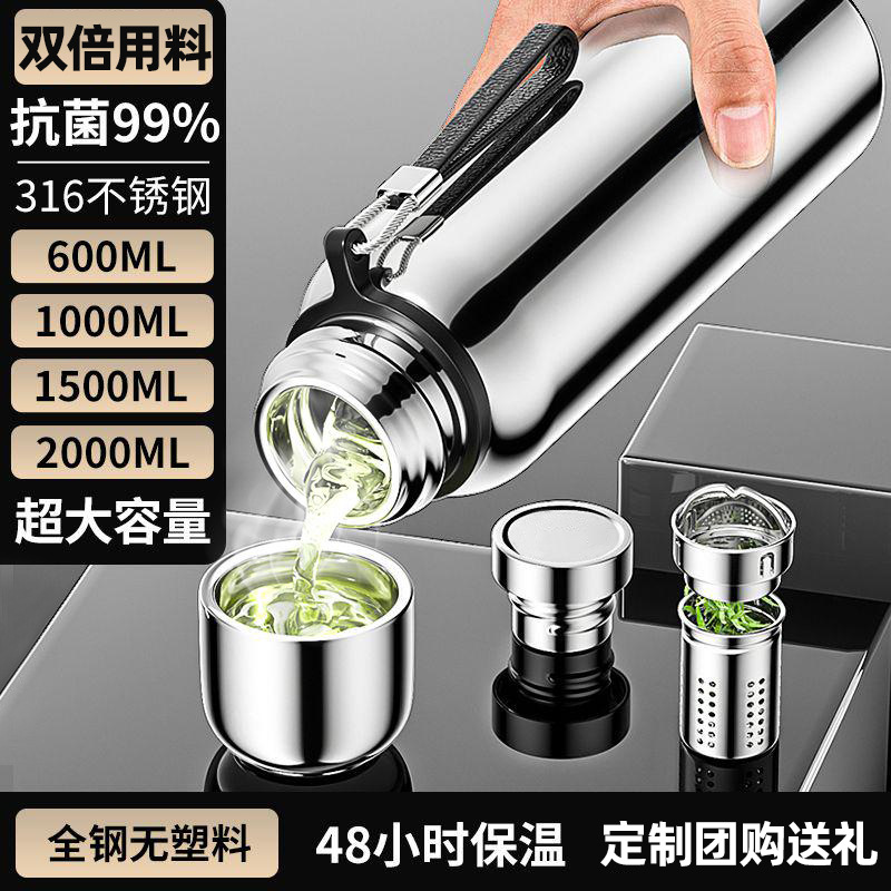 보온병 컵 316 스테인레스 스틸 보온병 컵 대용량 가정용 올 스틸 보온병 컵 차와 물 분리 컵 보온병 물컵